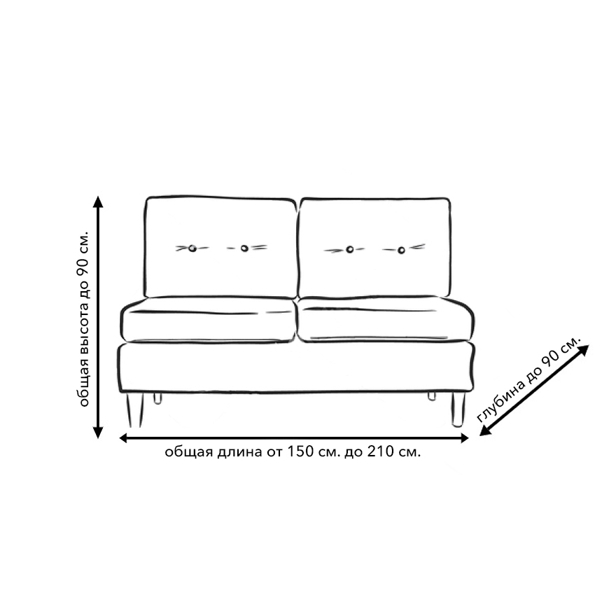 Возможная длина дивана от 150 до 210 см, высота мебели до 90 см.
