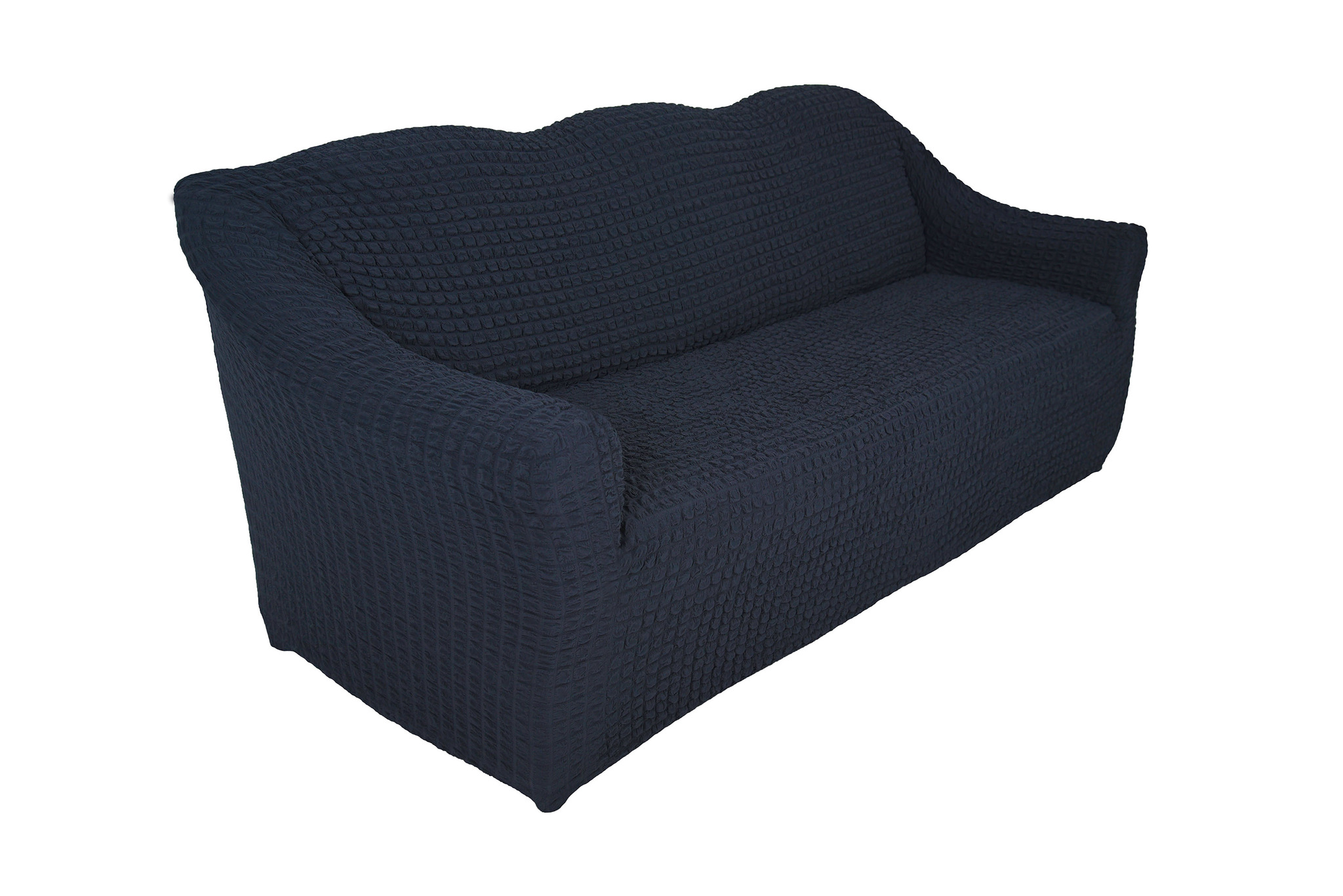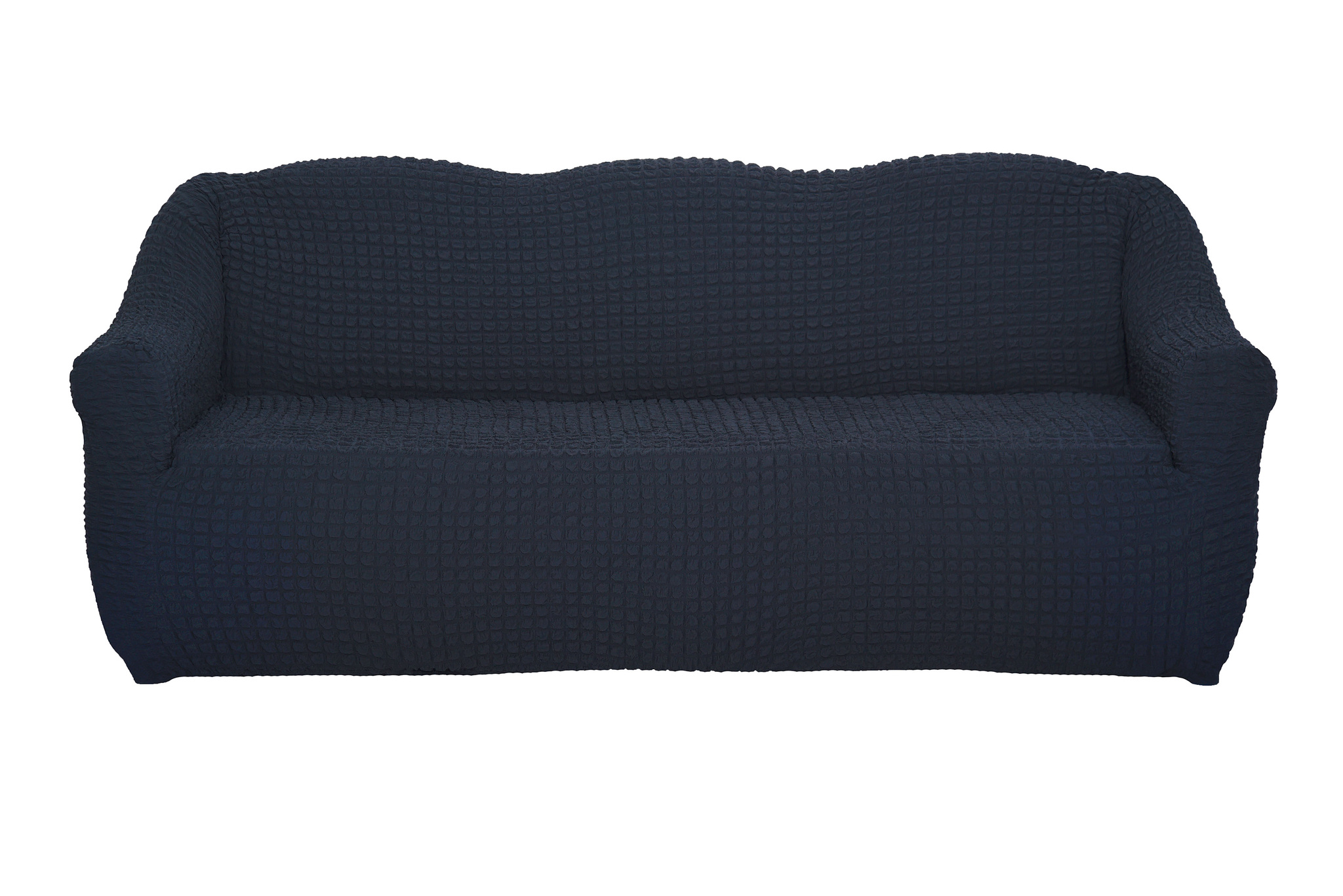 Чехол из эластичной ткани однотонного цвета подойдет на 3-х местный диван практически любой конфигурации.