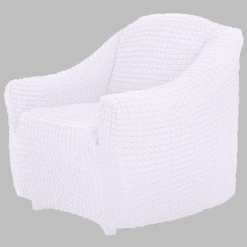 Чехол из эластичной ткани однотонного цвета подойдет на кресло практически любой конфигурации и размера.