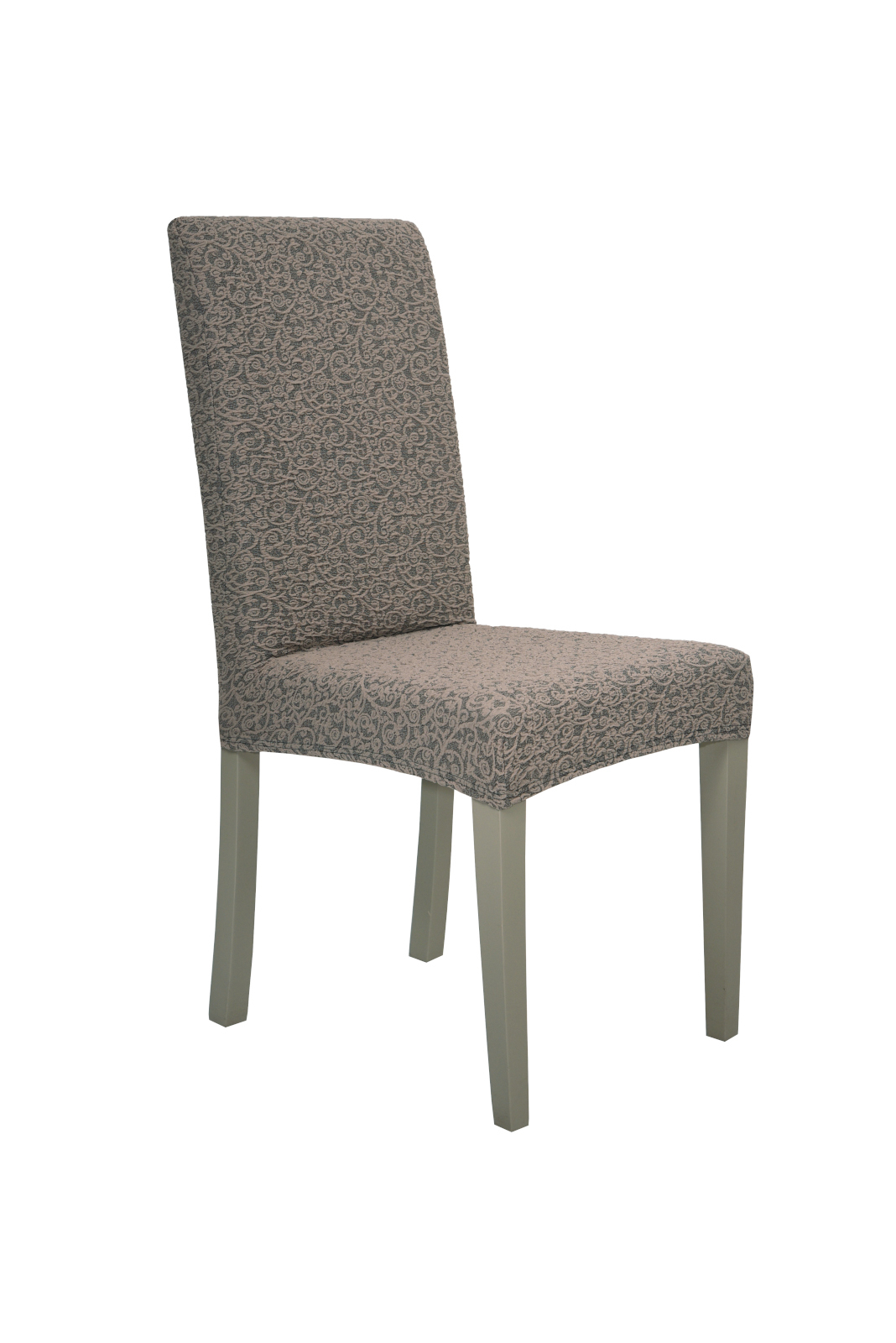 Чехол Жаккард без оборки из трикотажной ткани, обладающий высокой плотностью и, при этом очень мягкий и хорошо растягивающийся, подойдет на стул практически любой конфигурации стандартного размера.