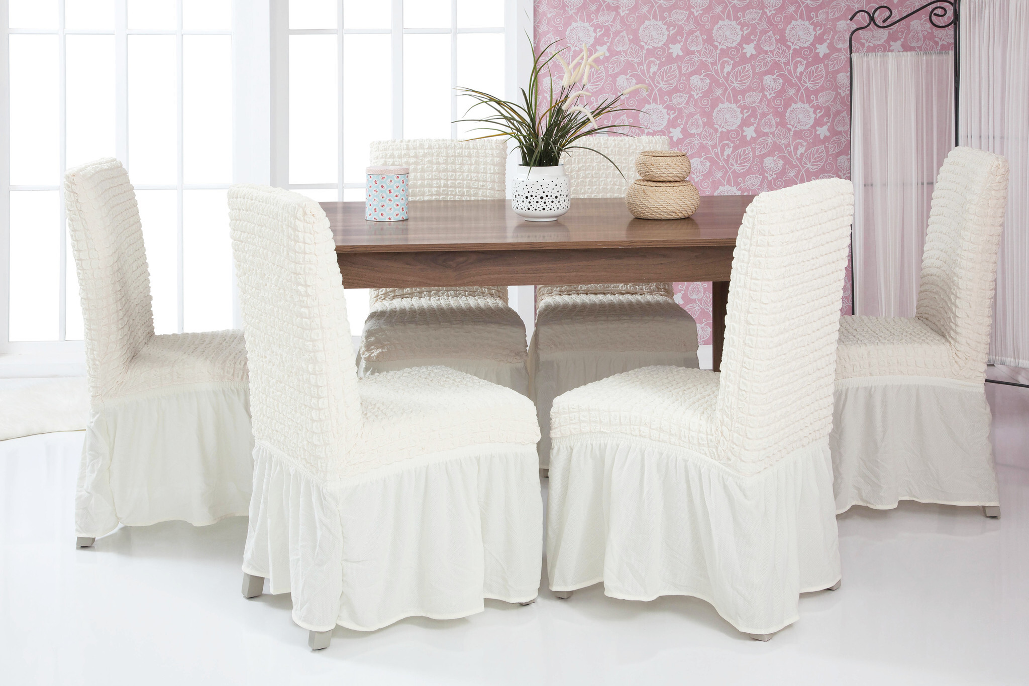 Чехол на стул с оборкой, цвет Белый, Набор 2 шт.