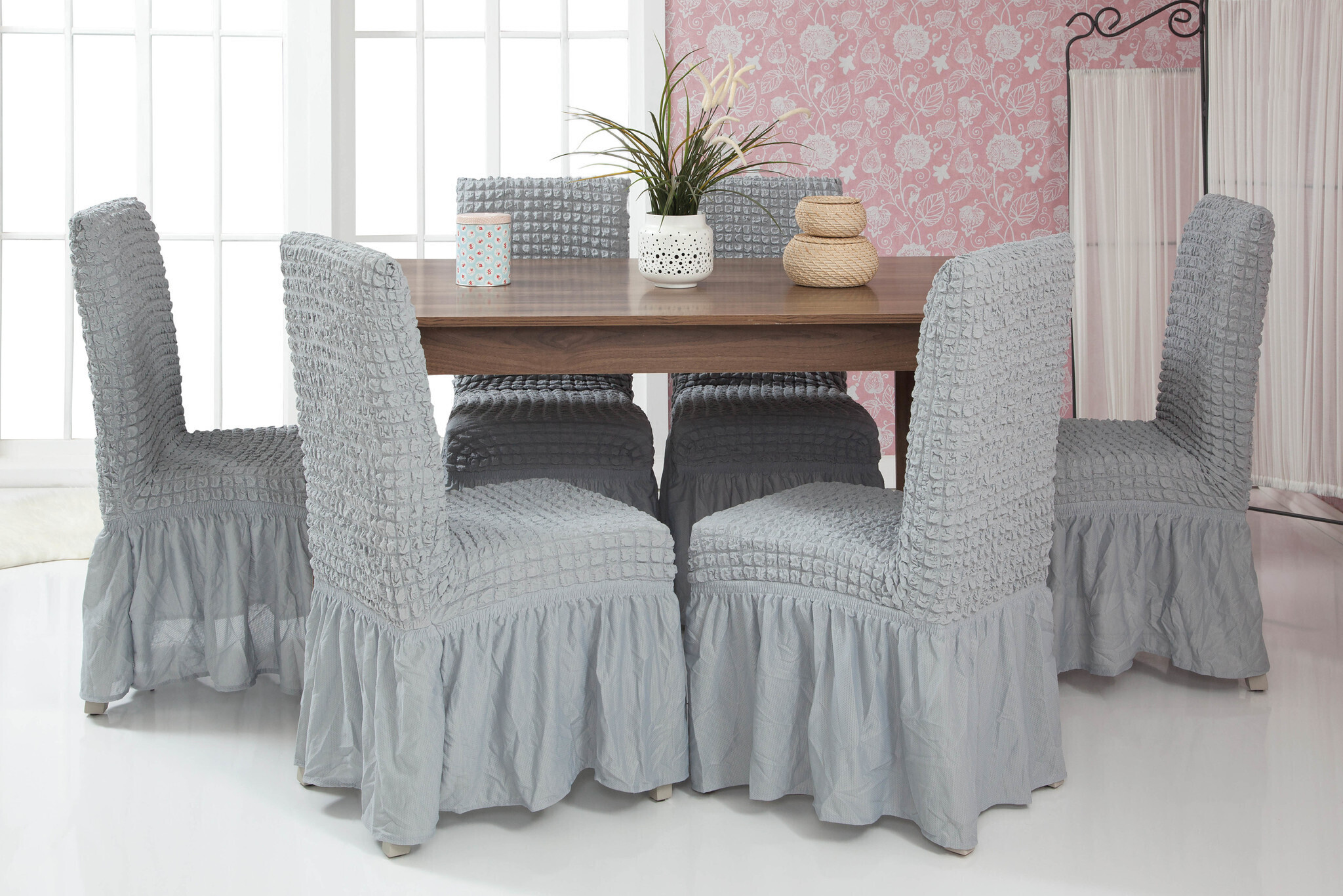 Чехол на стул с оборкой, цвет Серый, Набор 6 шт.