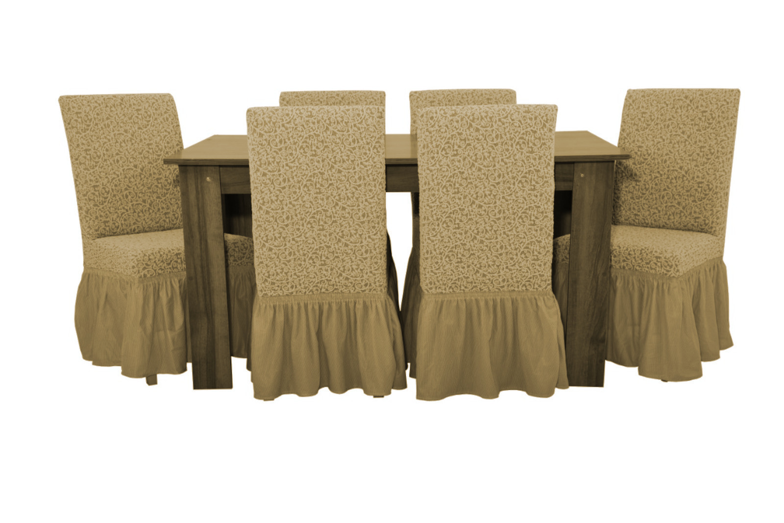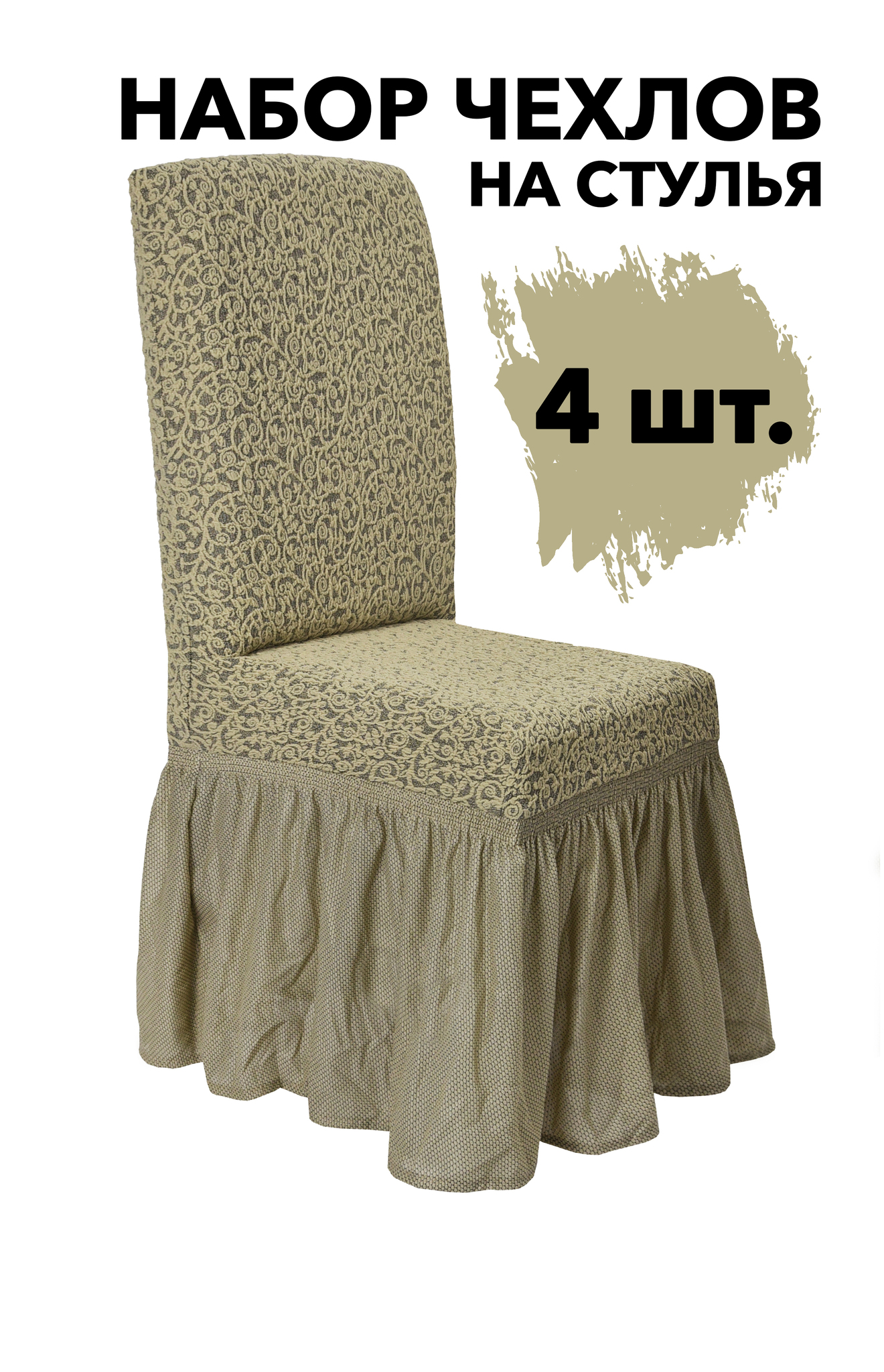 Чехол на стул с оборкой Жаккард, цвет Бежевый, Набор 4 шт.