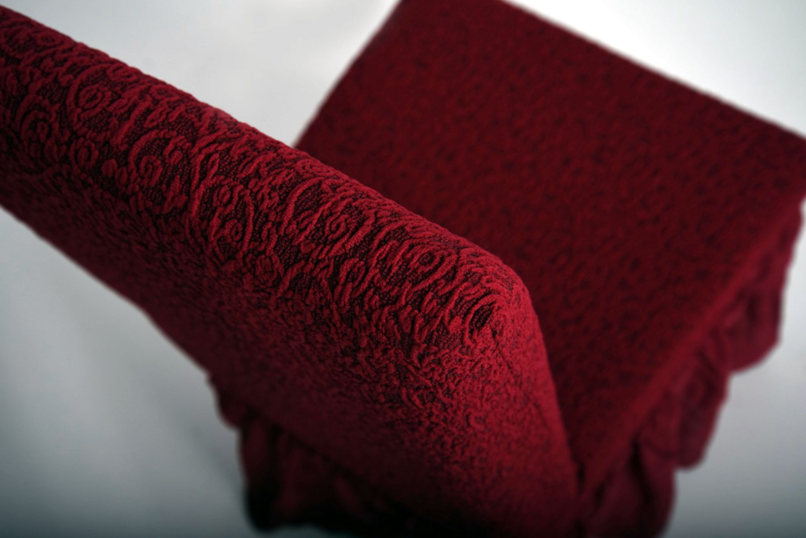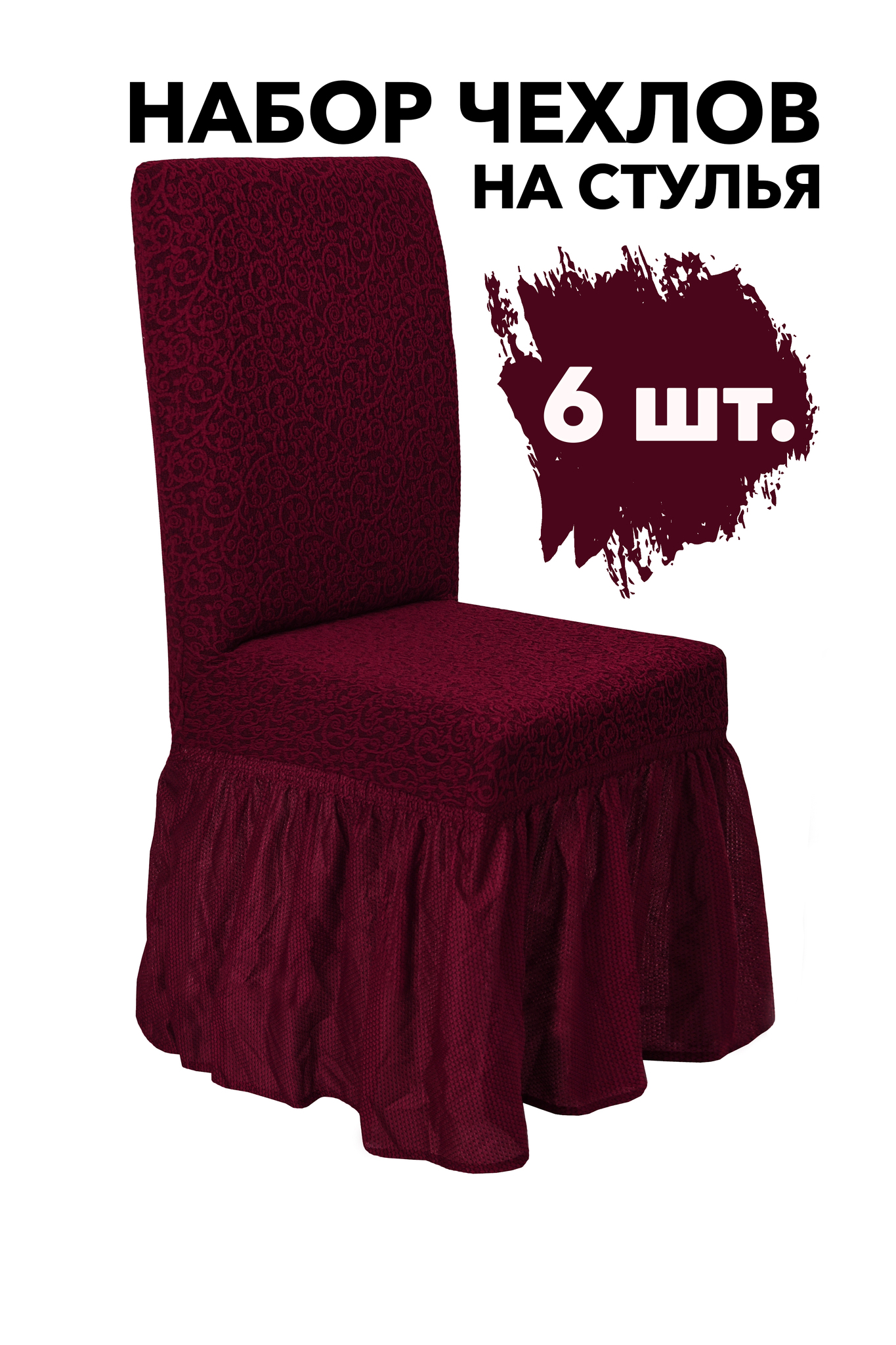 Чехол Жаккард с оборкой из трикотажной ткани, обладающий высокой плотностью и, при этом очень мягкий и хорошо растягивающийся, подойдет на стул практически любой конфигурации стандартного размера.