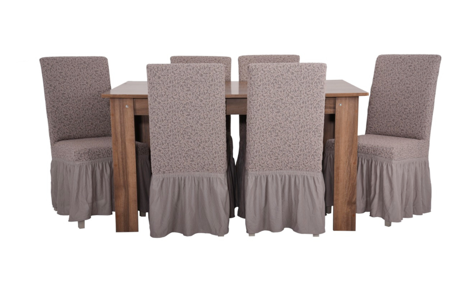 Чехол на стул с оборкой Жаккард, цвет Капучино, Набор 2 шт.