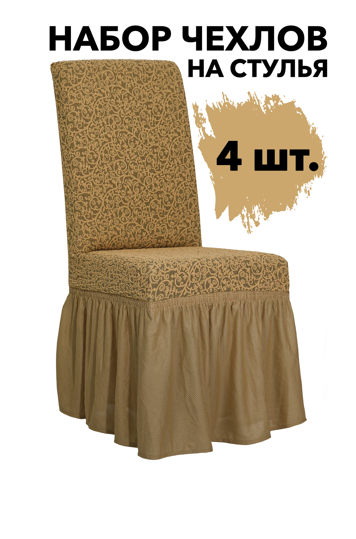 Чехол на стул с оборкой Жаккард, цвет Медовый, Набор 4 шт.