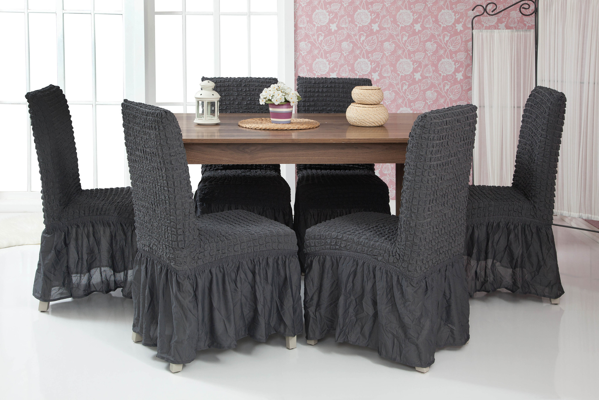 Чехол из эластичной ткани однотонного цвета подойдет на стул практически любой конфигурации и размера.