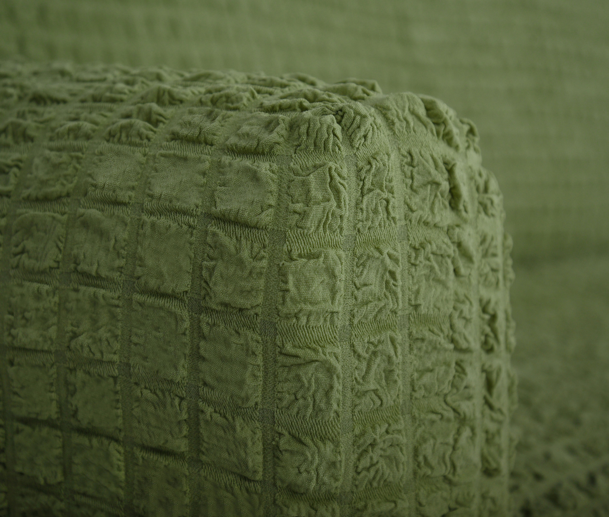 Чехол из эластичной ткани однотонного цвета на угловой и 4-х местный диван практически любой конфигурации. Подходит для угловых диванов с подлокотниками с левым или правым углом, а так же для 4-х местных диванов общей длиной 300-400 см и высотой спинки до 90 см и глубиной до 90 см.
