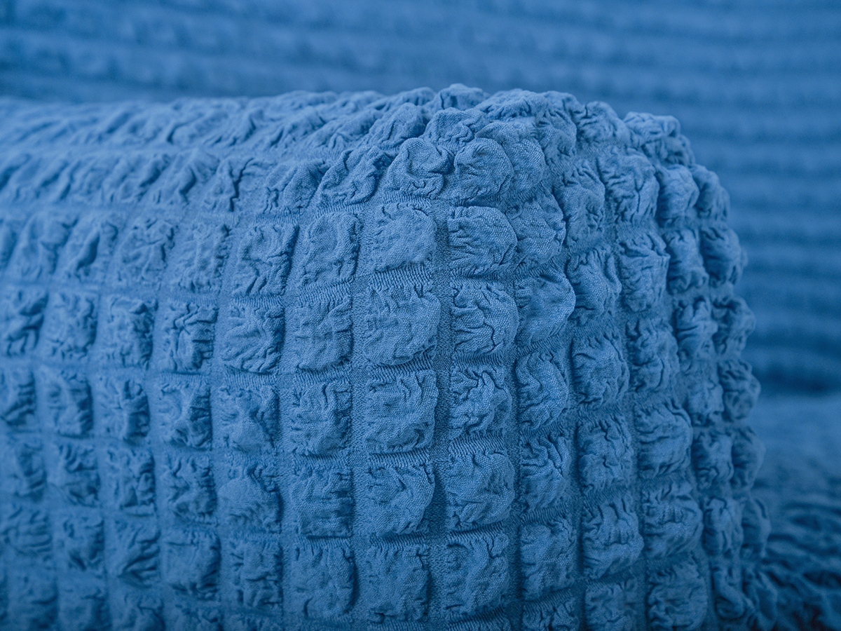 Чехол из эластичной ткани однотонного цвета подойдет на 3-х местный диван практически любой конфигурации.