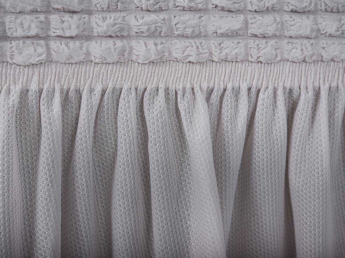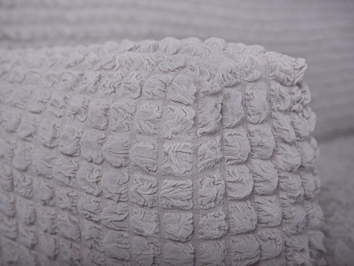 Чехол из эластичной ткани однотонного цвета подойдет на 3-х местный диван практически любой конфигурации.