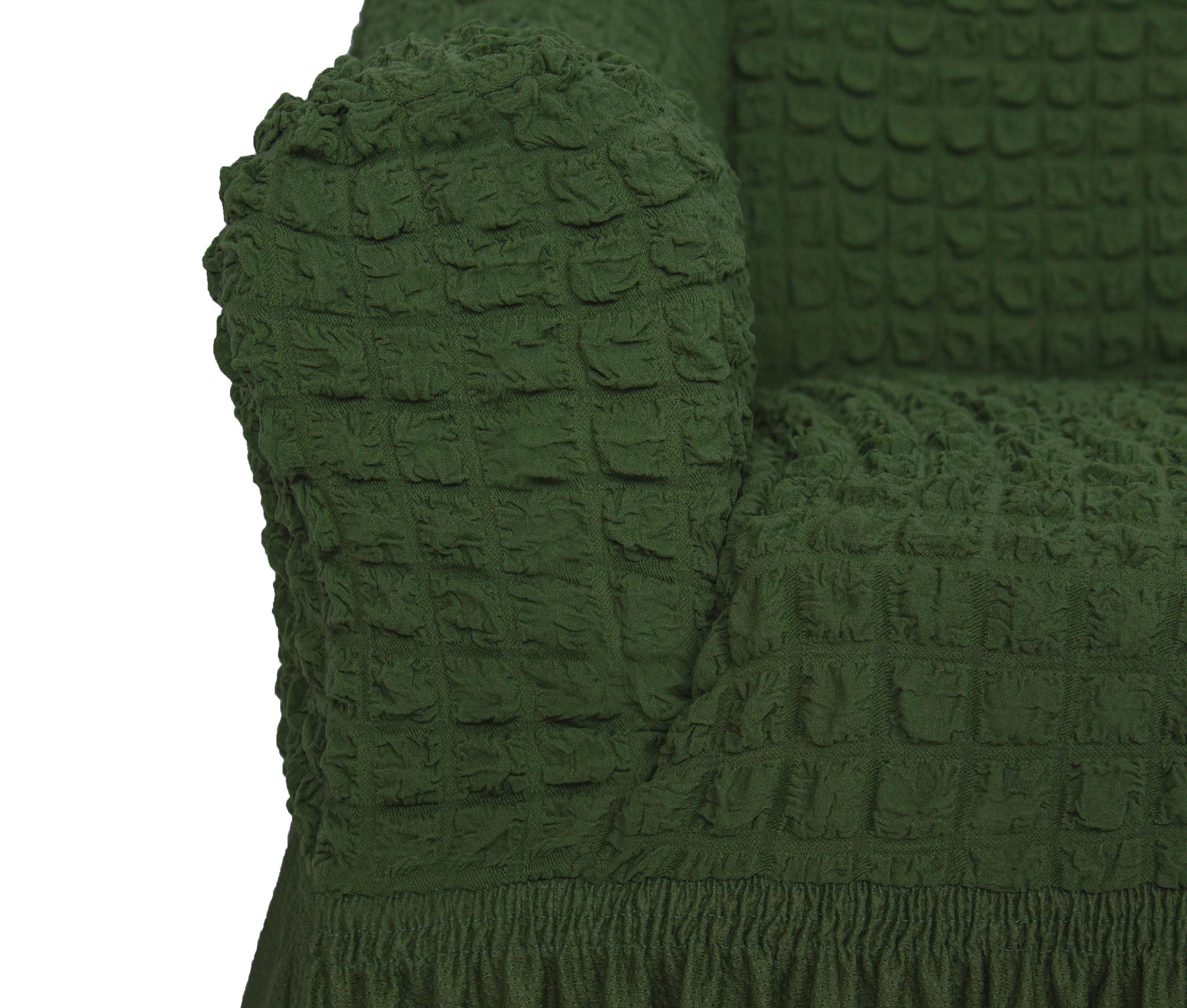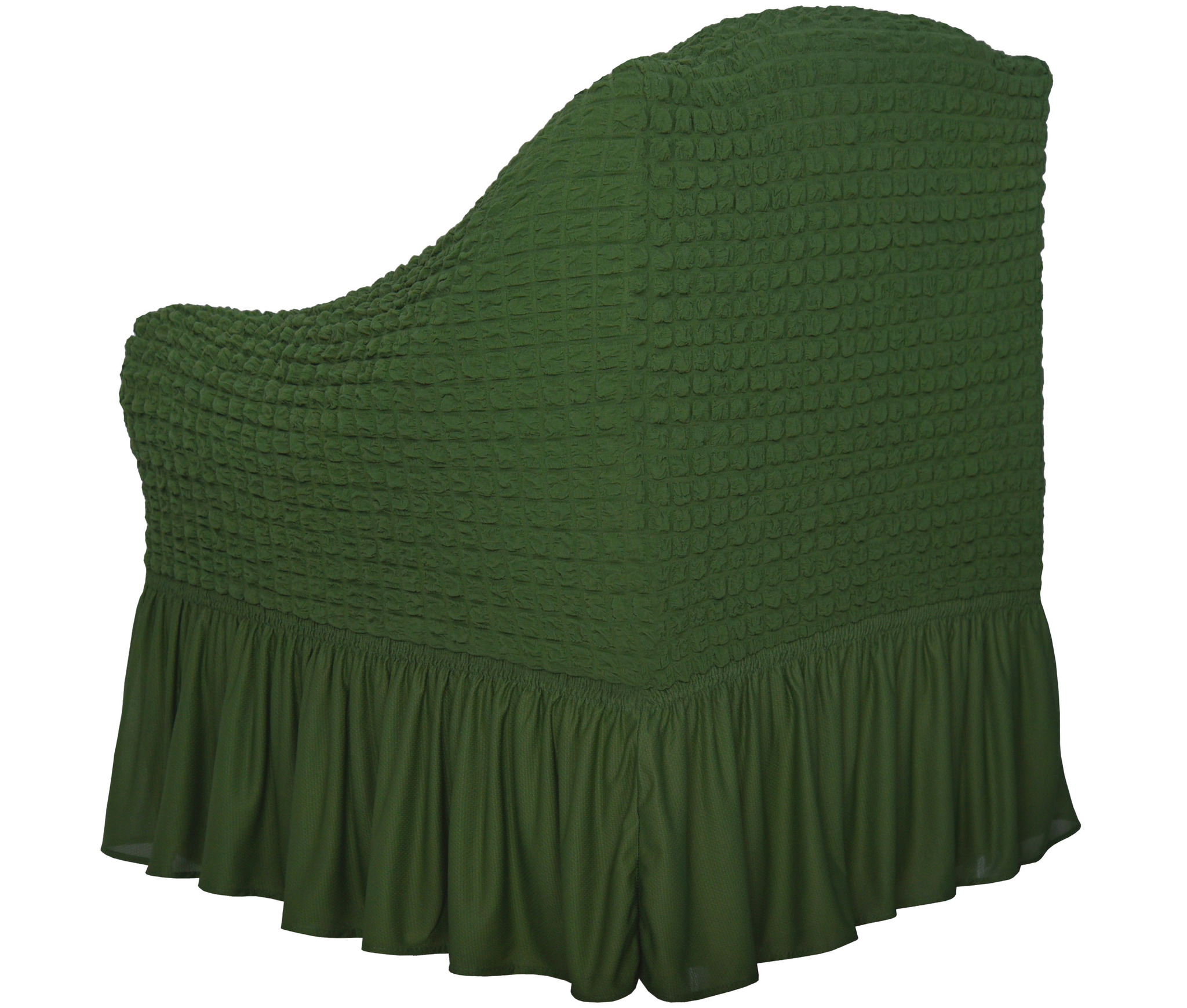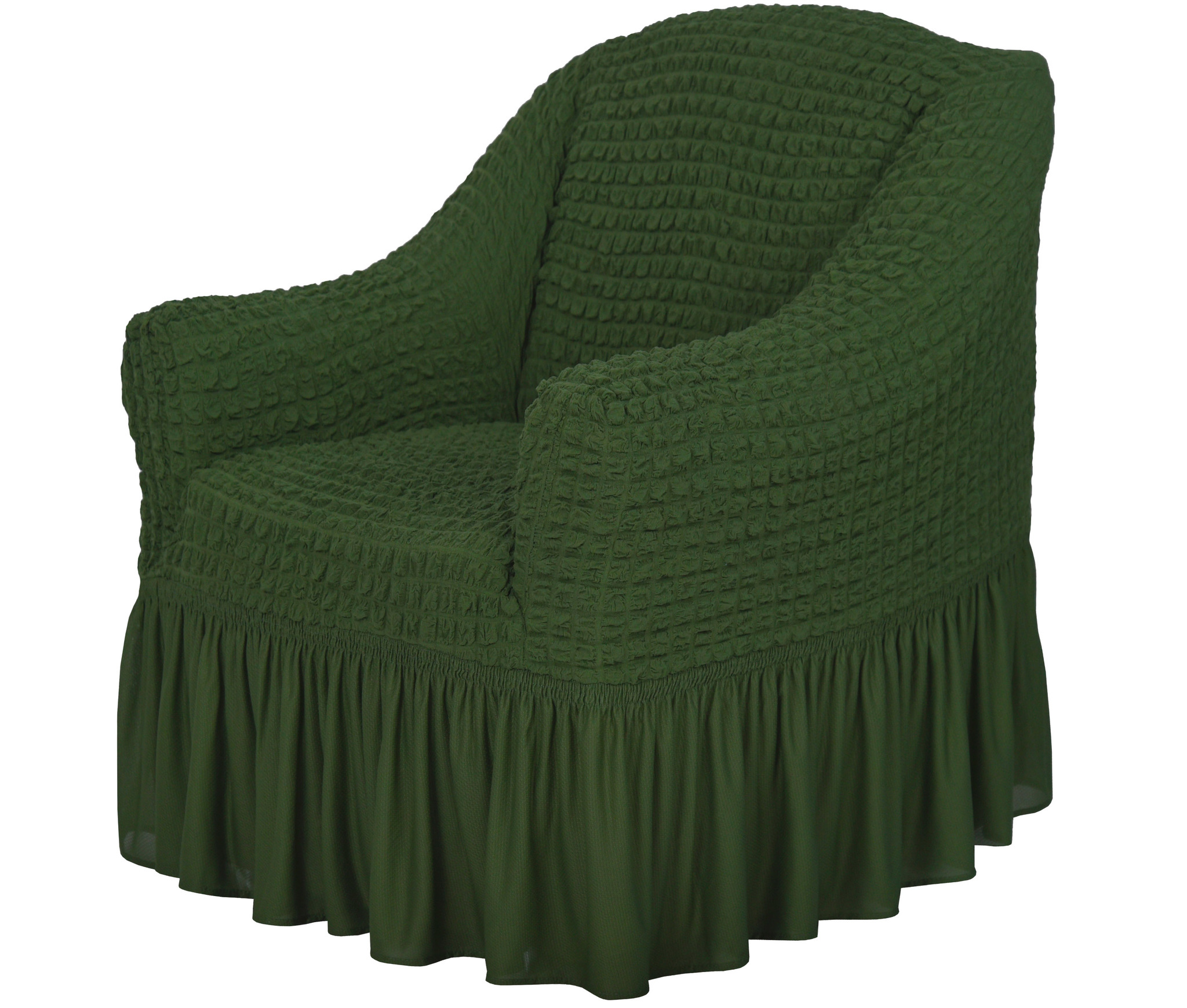 Чехол из эластичной ткани однотонного цвета подойдет на кресло практически любой конфигурации и размера.