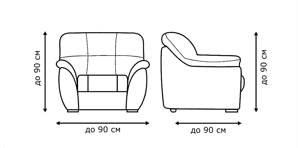 Размер кресла: длина от 50 до 90 см, высота и глубина до 90 см.