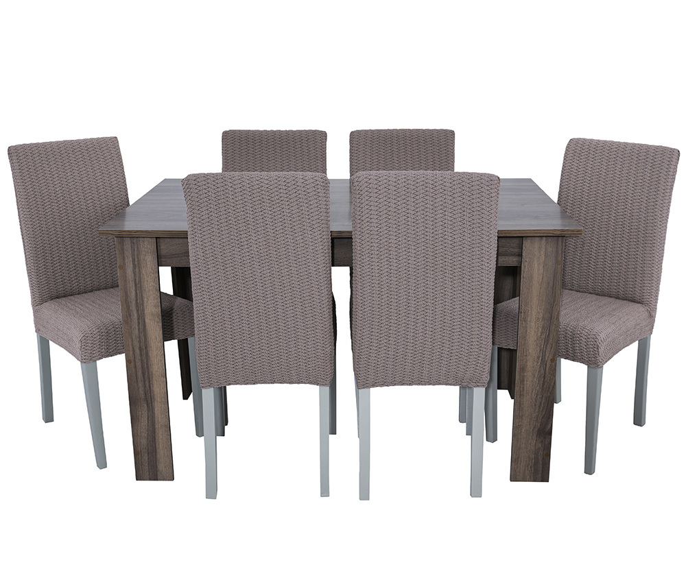 Чехол "Жаккард Зигзаг" без оборки из трикотажной ткани, обладающий высокой плотностью и, при этом очень мягкий и хорошо растягивающийся, подойдет на стул практически любой конфигурации стандартного размера.