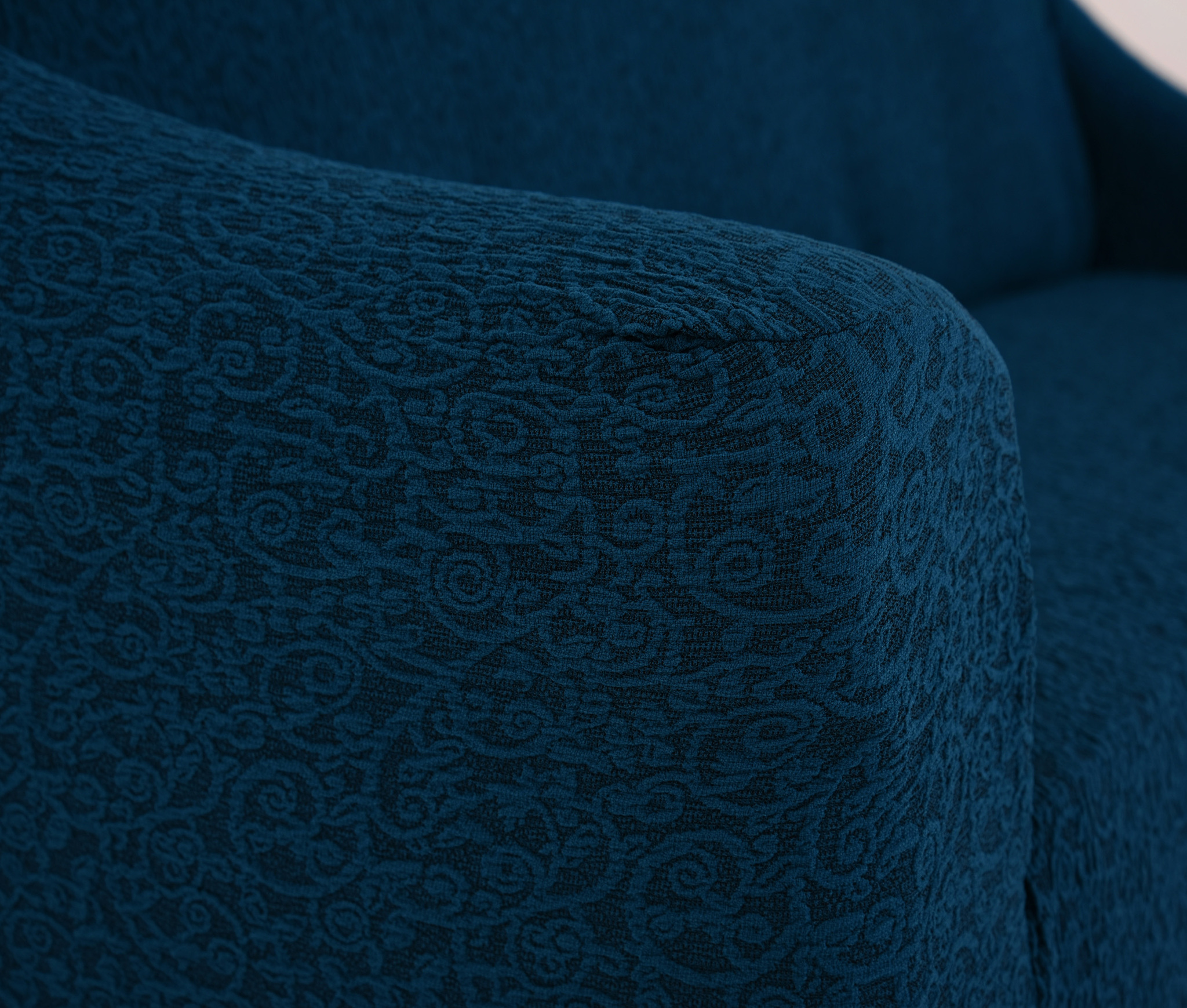 Чехол Жаккард из эластичной трикотажной ткани с узором подойдет на трехместный диван практически любой конфигурации.
