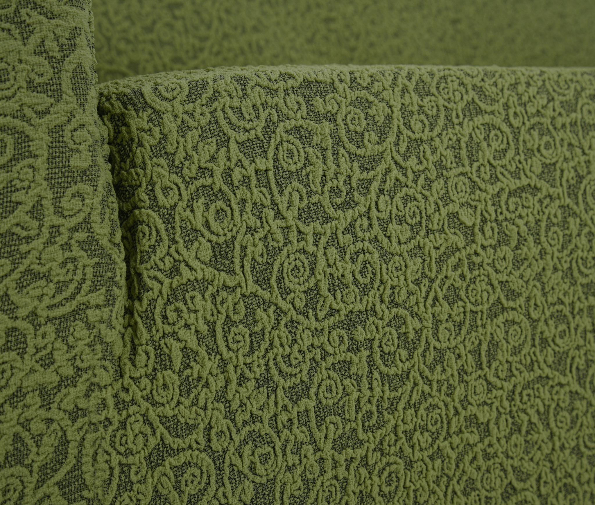 Чехол Жаккард из эластичной трикотажной ткани с узором подойдет на трехместный диван практически любой конфигурации.