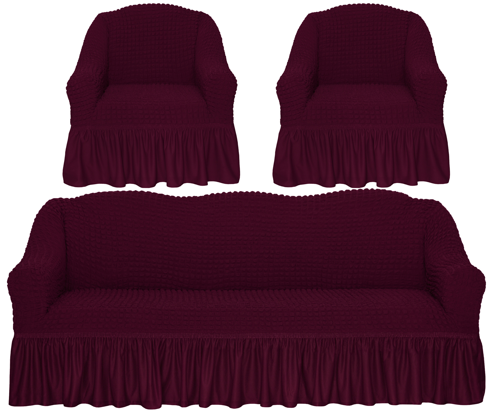 Комплект чехлов на трехместный диван и кресла с оборкой, цвет Бордовый