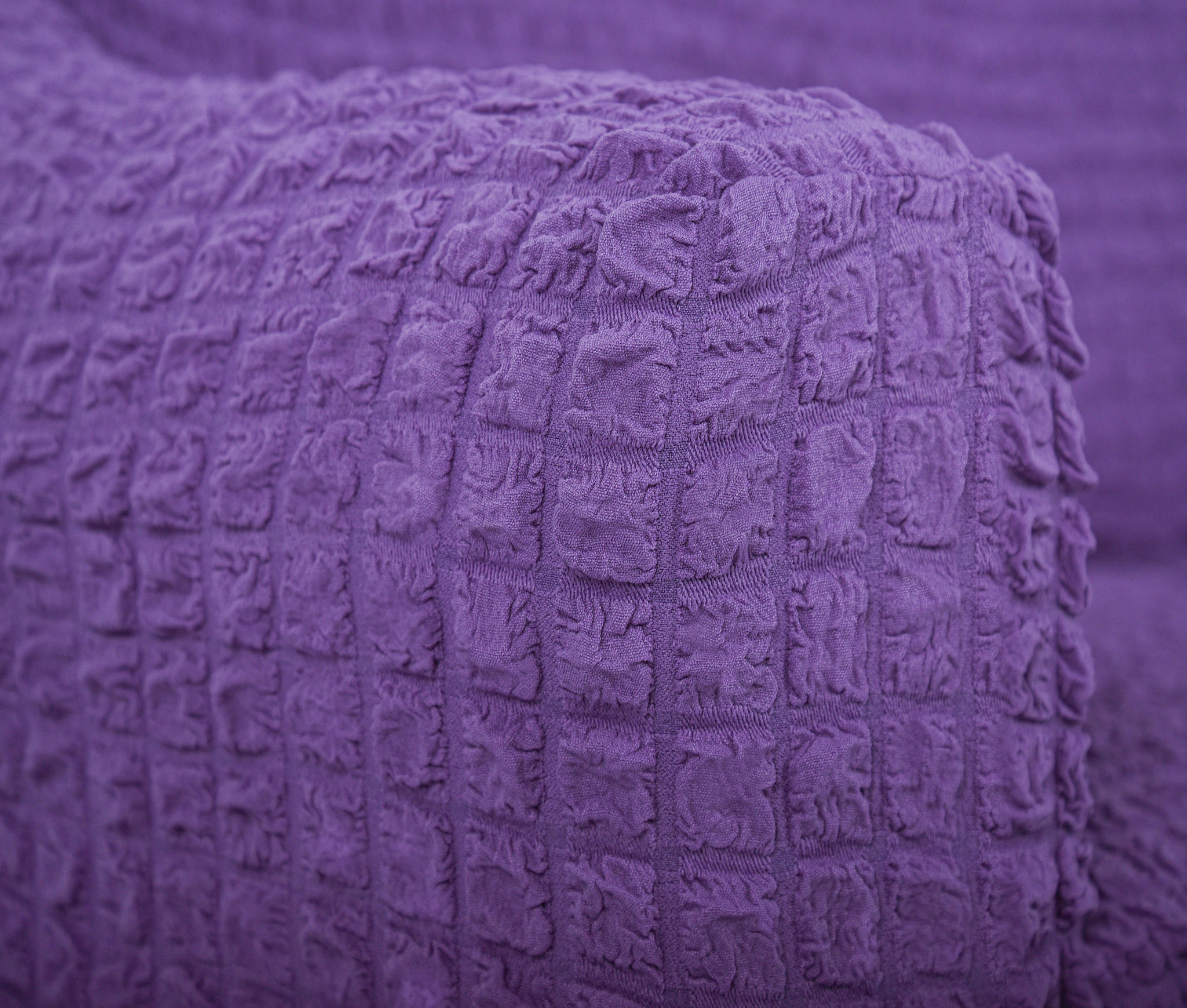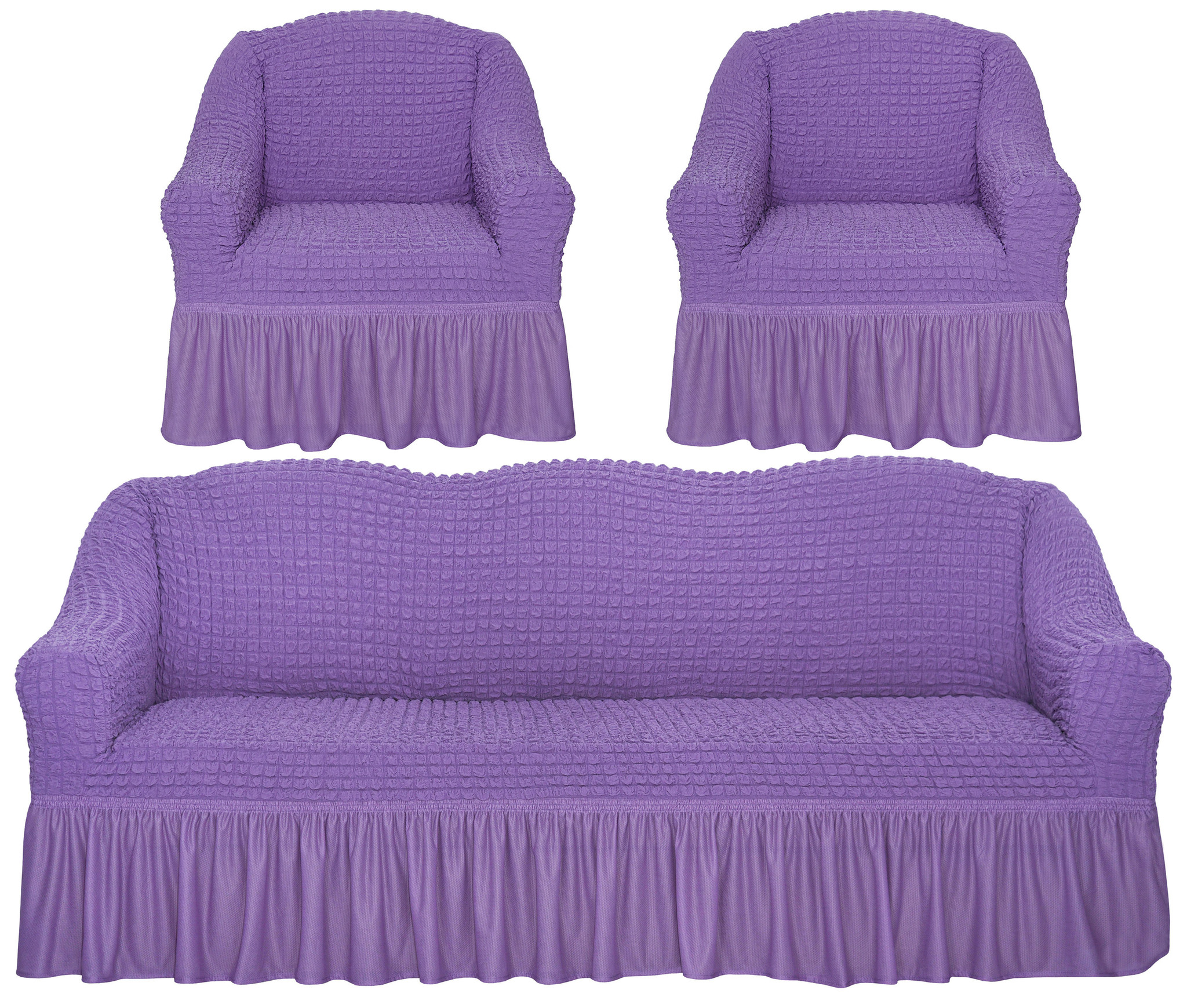Комплект чехлов из эластичной ткани однотонного цвета, состоит из чехла на трехместный местный диван и двух чехлов на кресла.
