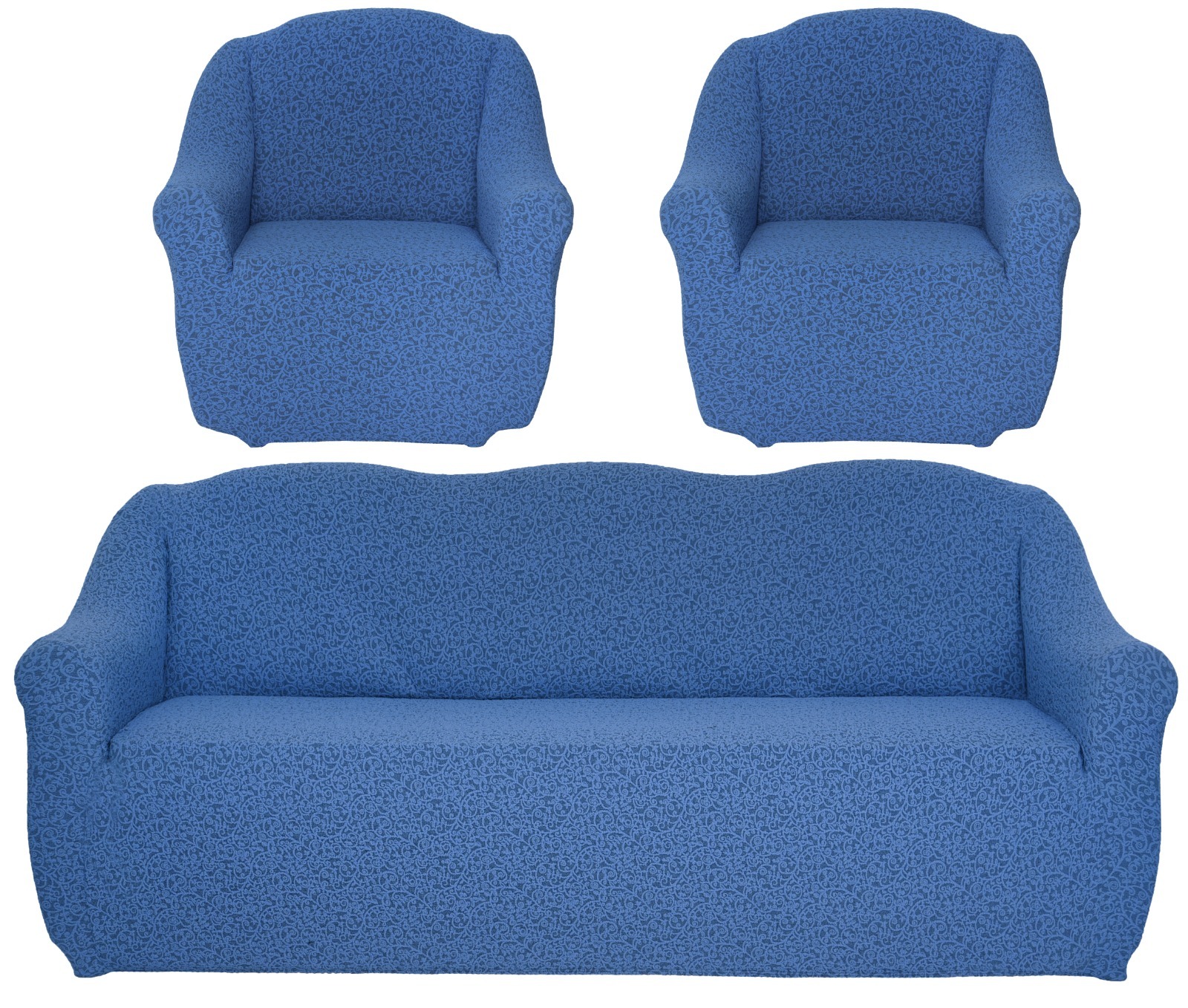 Комплект чехлов на диван и 2 кресла без оборки Жаккард, цвет Голубой