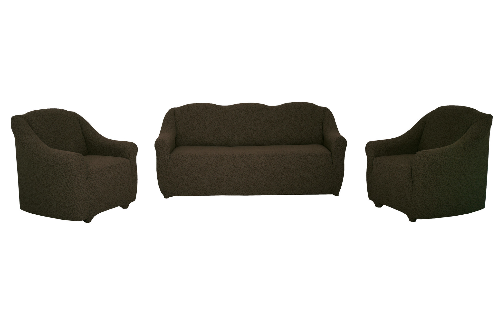 Комплект чехлов на диван и 2 кресла без оборки Жаккард, цвет Кофе с молоком