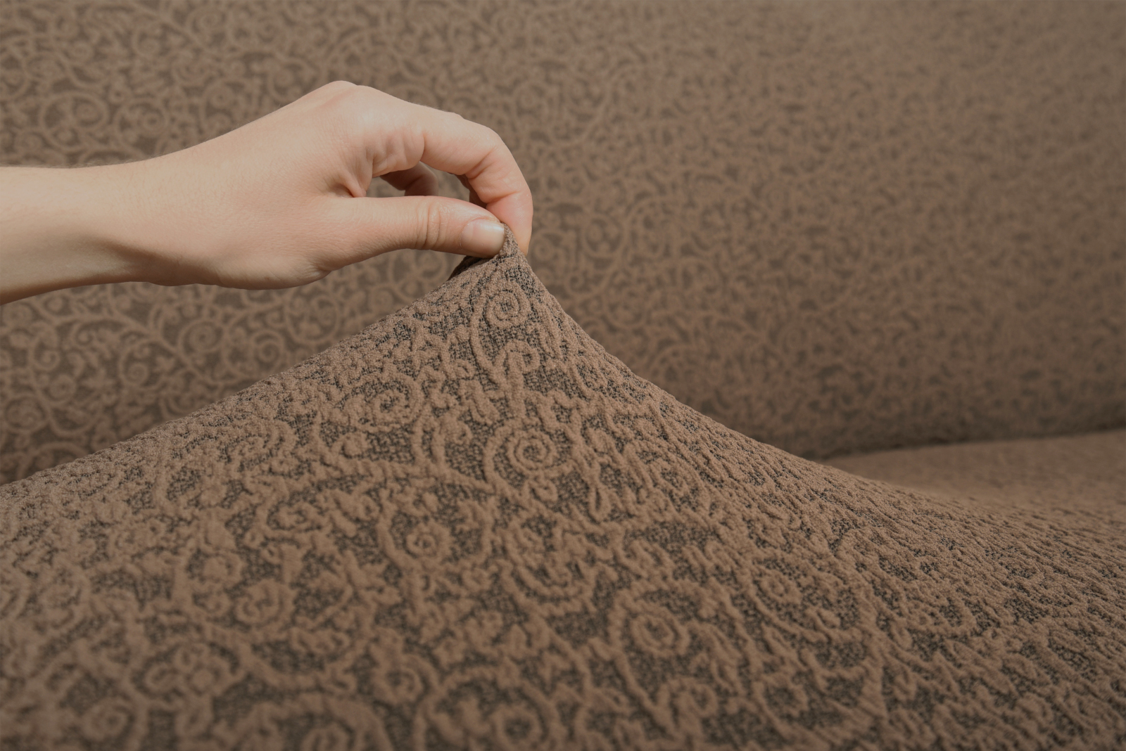 Красивый и практичный, комплект чехлов из жаккардовой ткани без оборки в классическом стиле надежно защитит вашу мебель от пятен и других различных загрязнении. Из-за эффекта стретч он будет плотно и красиво сидеть на вашем диване и креслах. Чехлы можно постирать в стиральной машине на деликатном режиме стирки при 30 градусах.