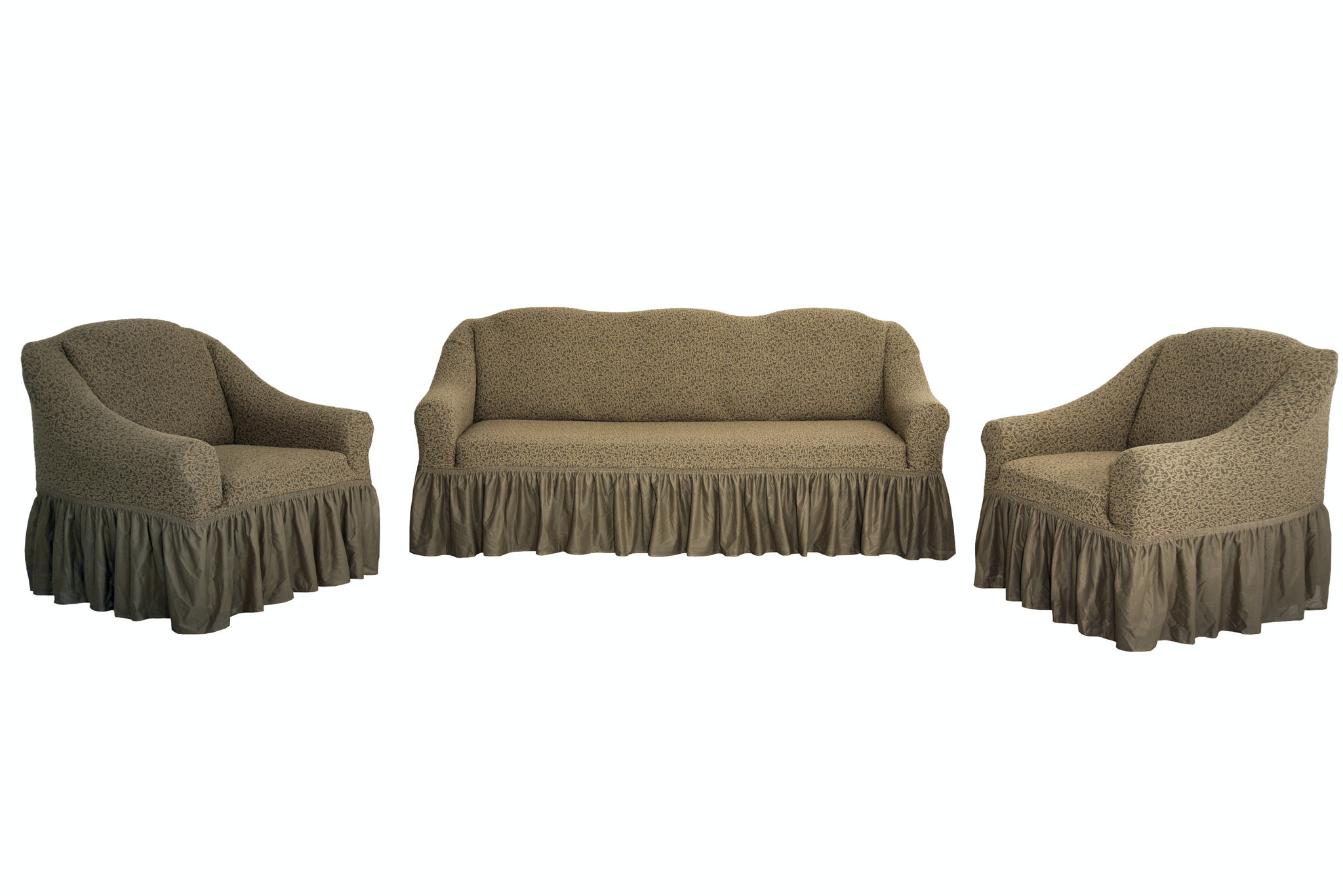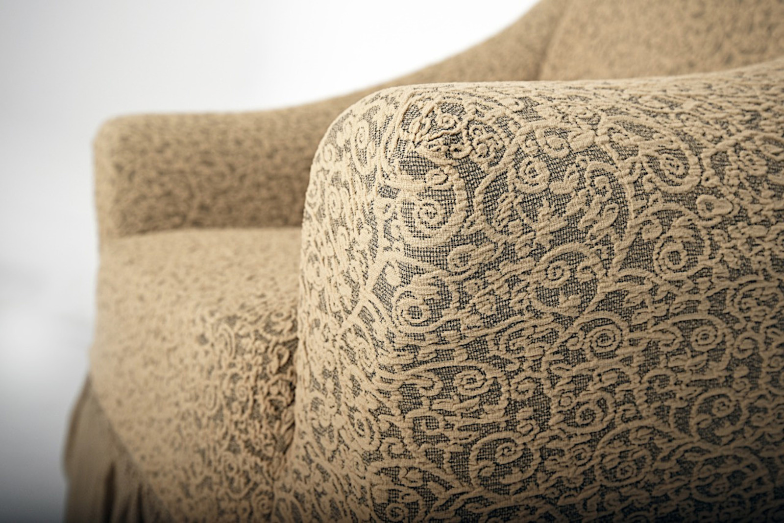 Красивый и практичный, комплект чехлов из жаккардовой ткани в классическом стиле надежно защитит вашу мебель от пятен и других различных загрязнении. Из-за эффекта стрейч он будет плотно и красиво сидеть на вашем диване и креслах. Чехлы можно постирать в стиральной машине на деликатном режиме стирки при 30 градусах.