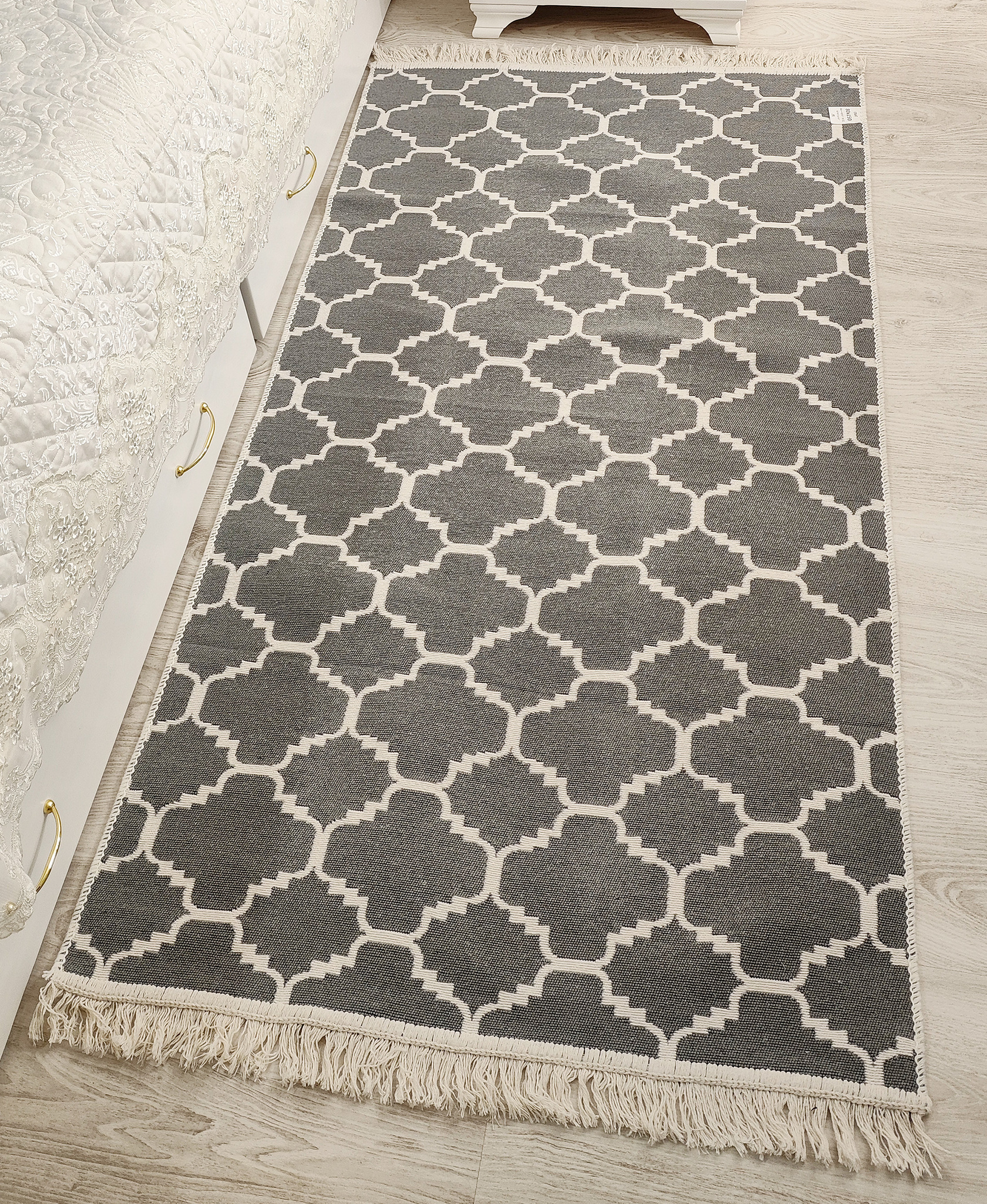 Важно учитывать! Так как обе стороны у ковра лицевые, а сами ковры хлопковые, мы рекомендуем подкладывать под ковер силиконовую подложку, чтобы ковер плотно прилегал к полу.