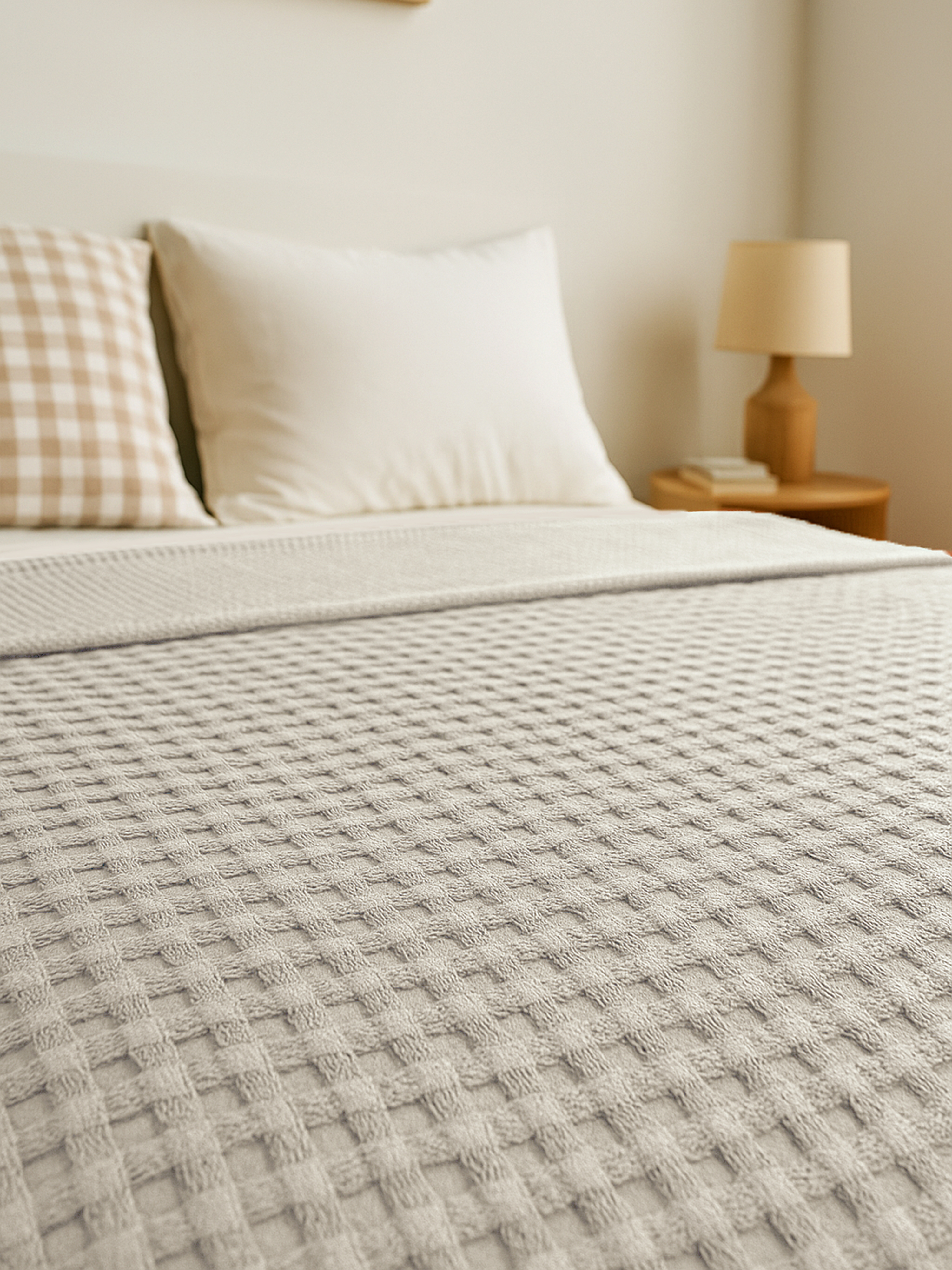 Этот двухсторонний хлопковый покрывало-плед - идеальный выбор для создания комфорта и уюта в вашей спальне или гостиной. С его однотонным рисунком, натуральным составом и универсальными размерами, он может быть использован для различных целей: от согревания в прохладные дни до использования в качестве покрывала на кровать или накидки на мягкую мебель.