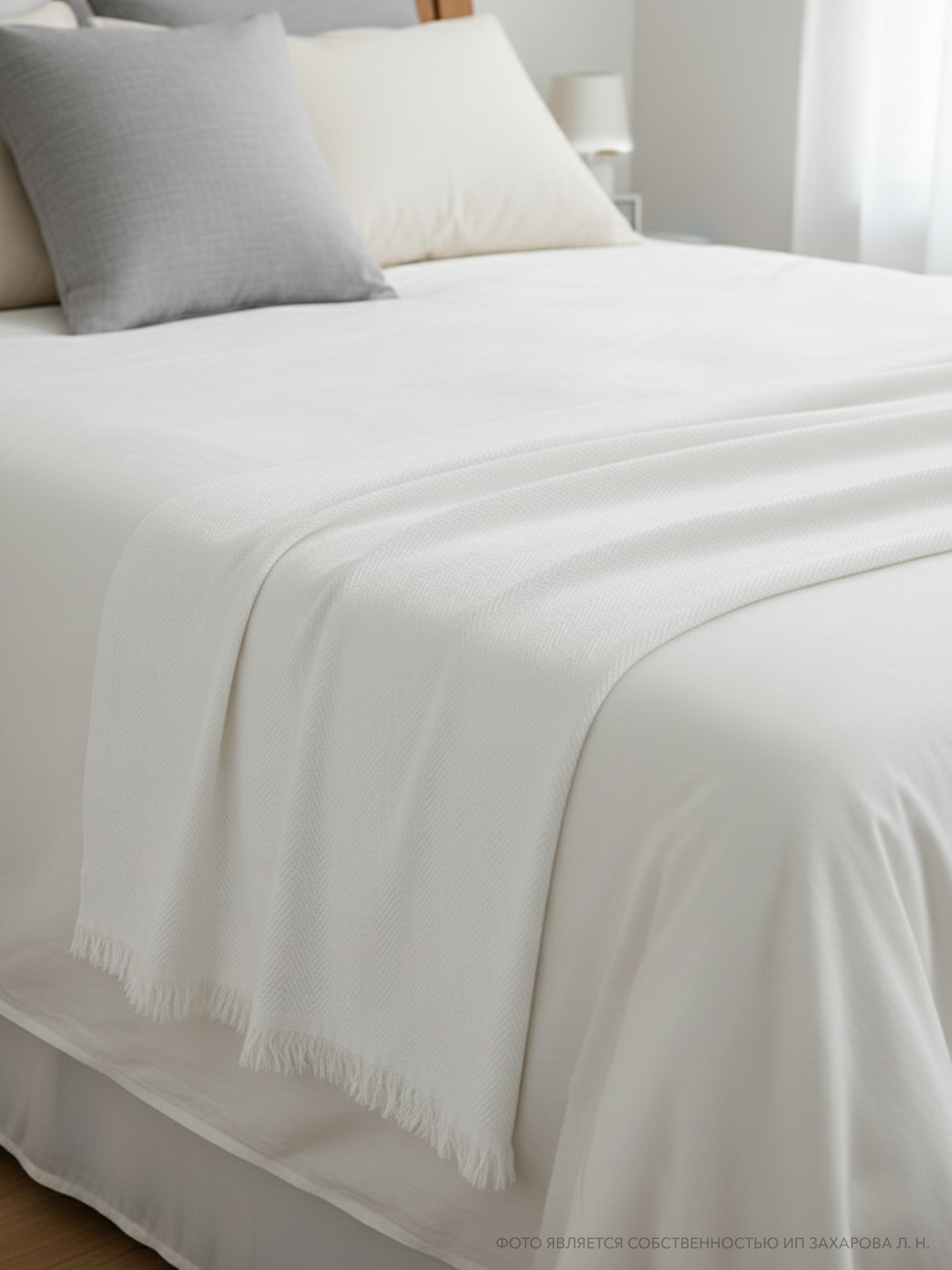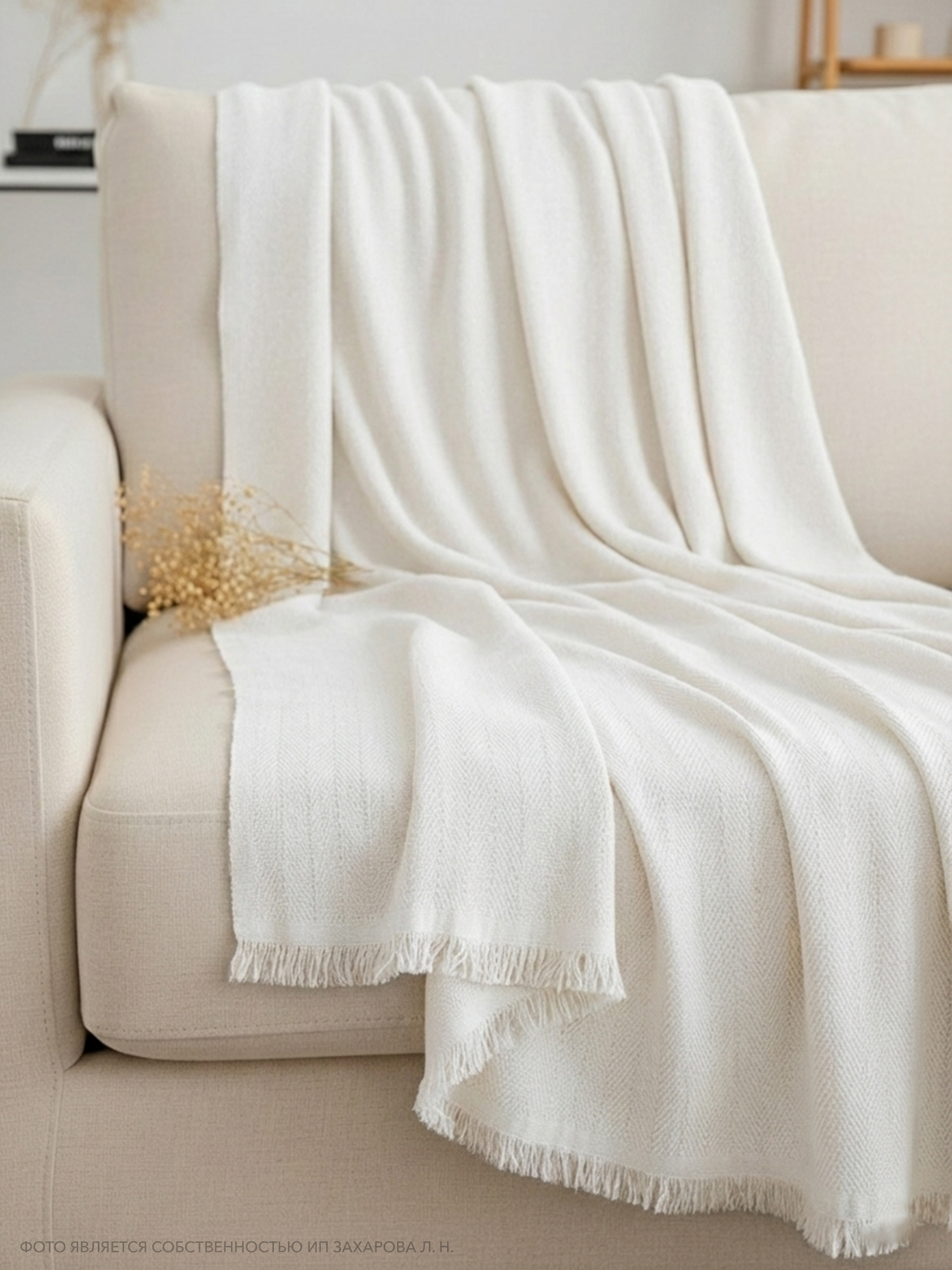 Плед имеет ткань в мелкий рубчик и кисточки по двум сторонам, что придает ему элегантный и стильный вид. Он универсален и подходит для всех сезонов года, так как его можно использовать в качестве пледа или покрывала. Кроме того, он может служить в качестве одеяла, если вам нужно дополнительное тепло.