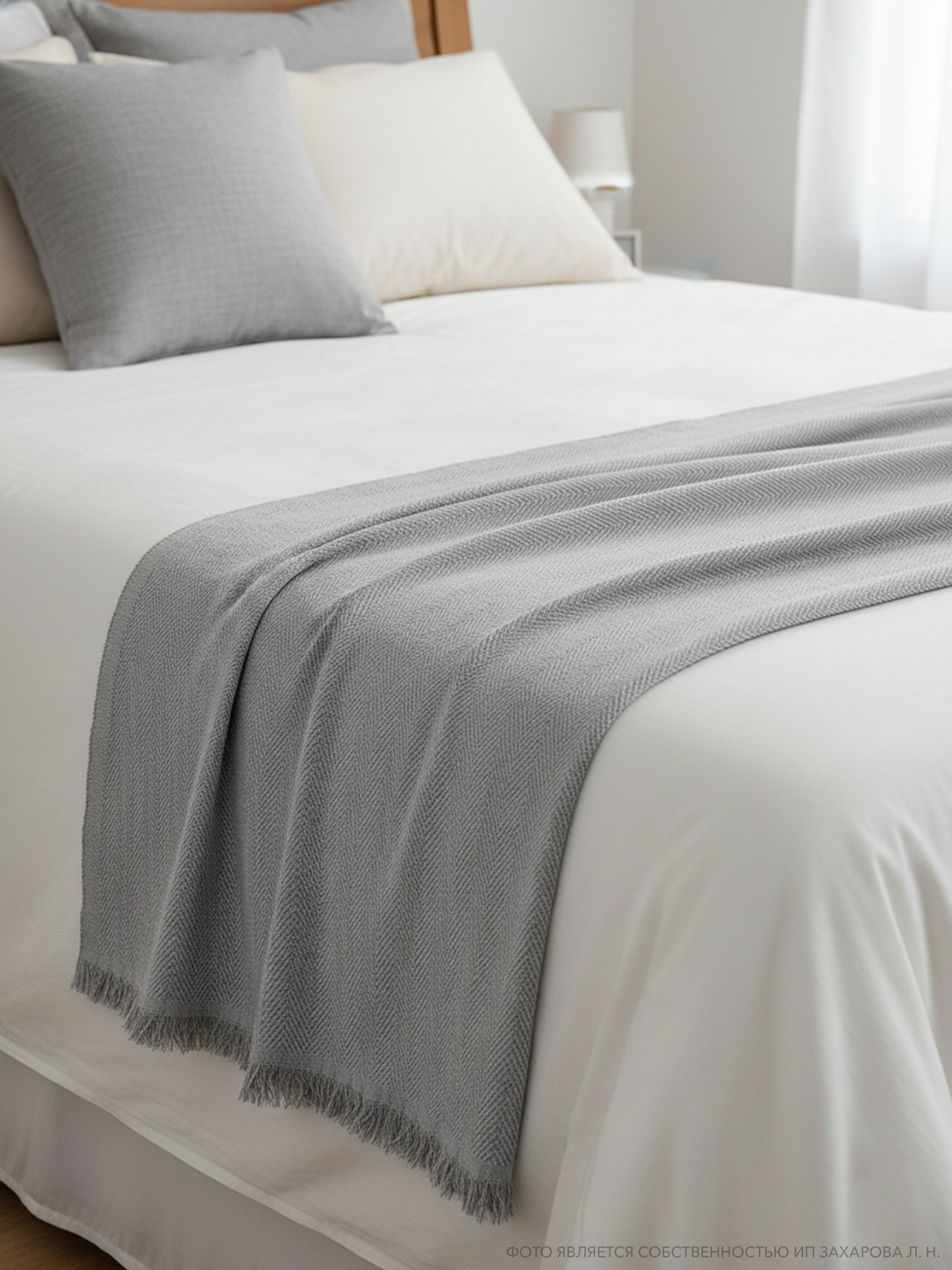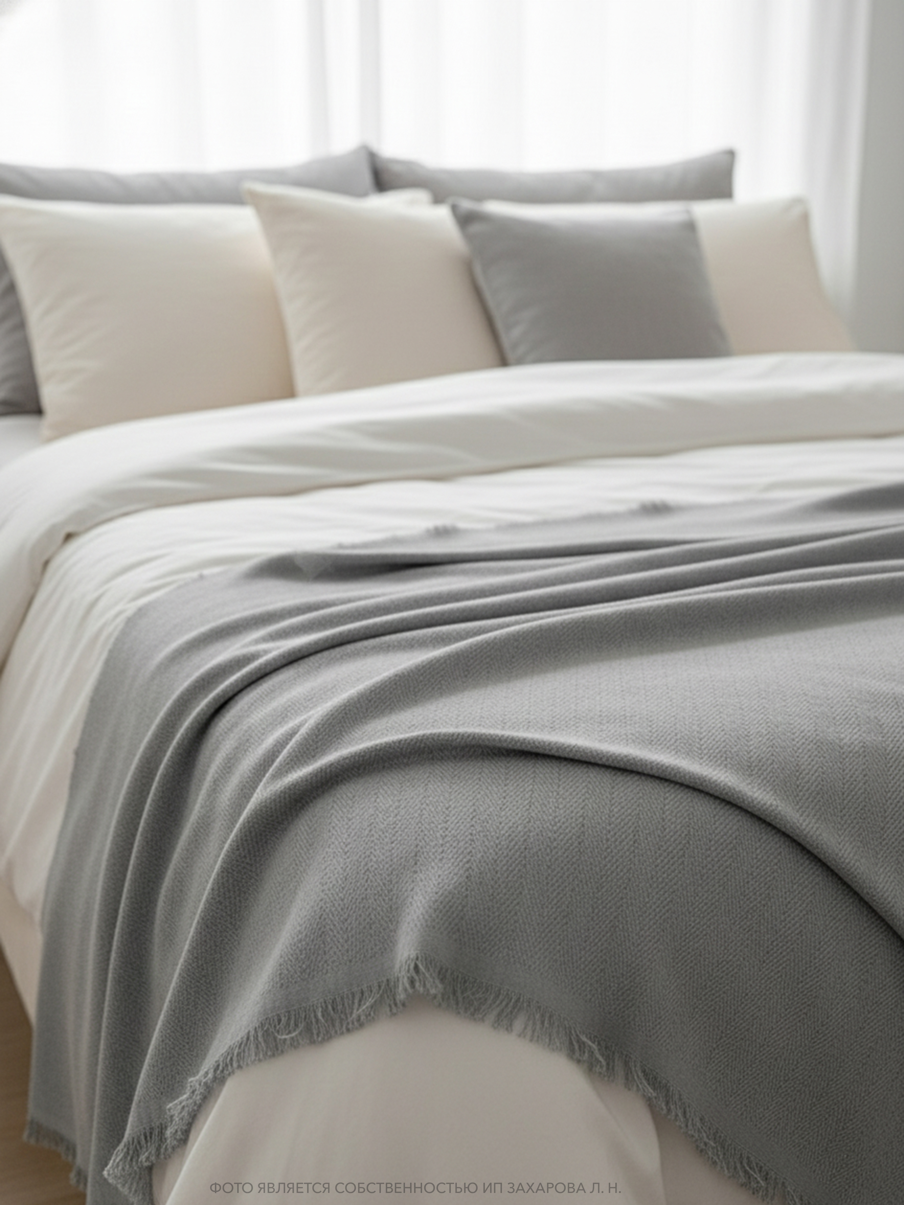 Купить плед на кровать и диван из хлопка 220×240, серый