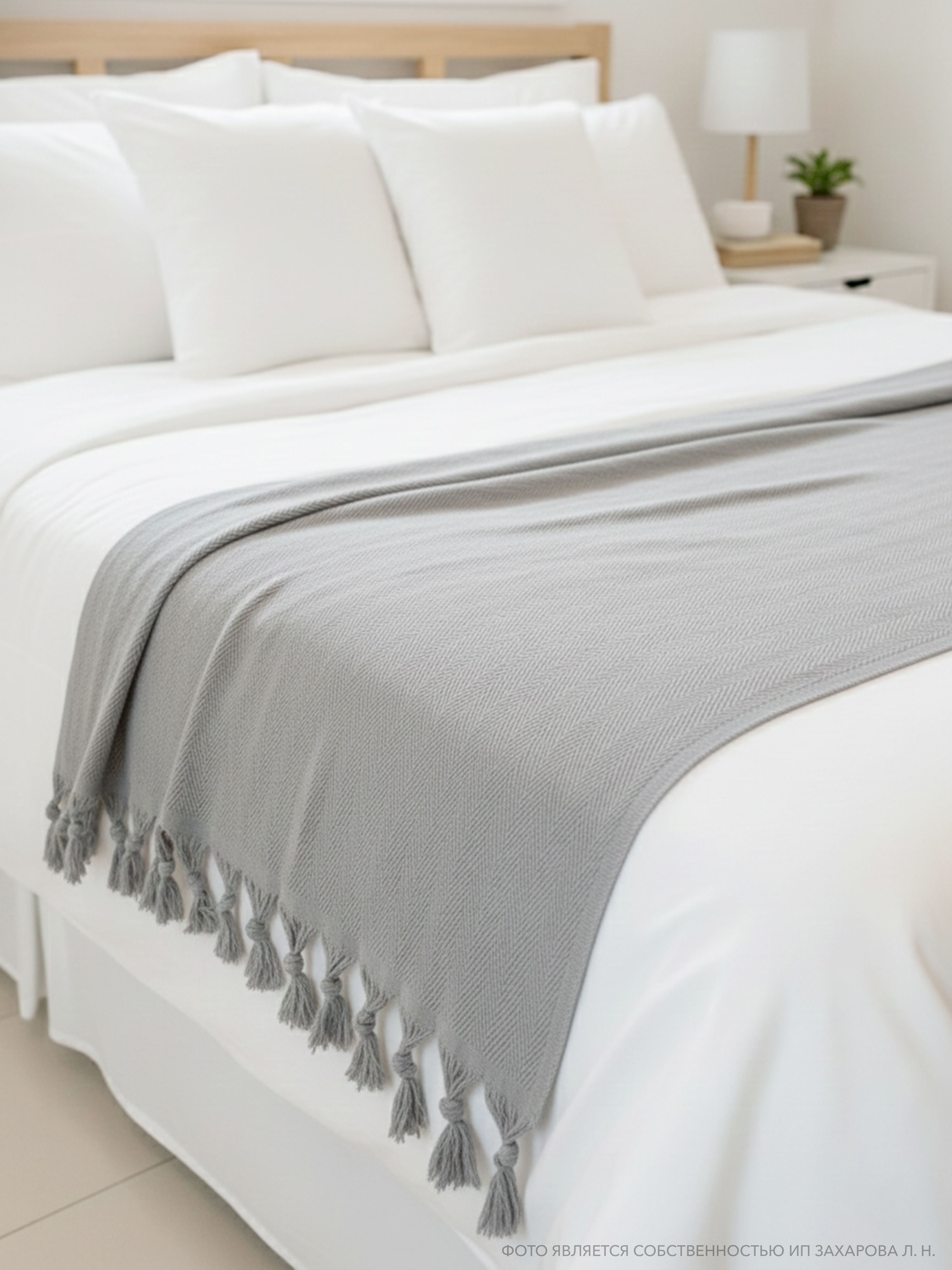 Хлопковый плед 200×230 с кистями, серый