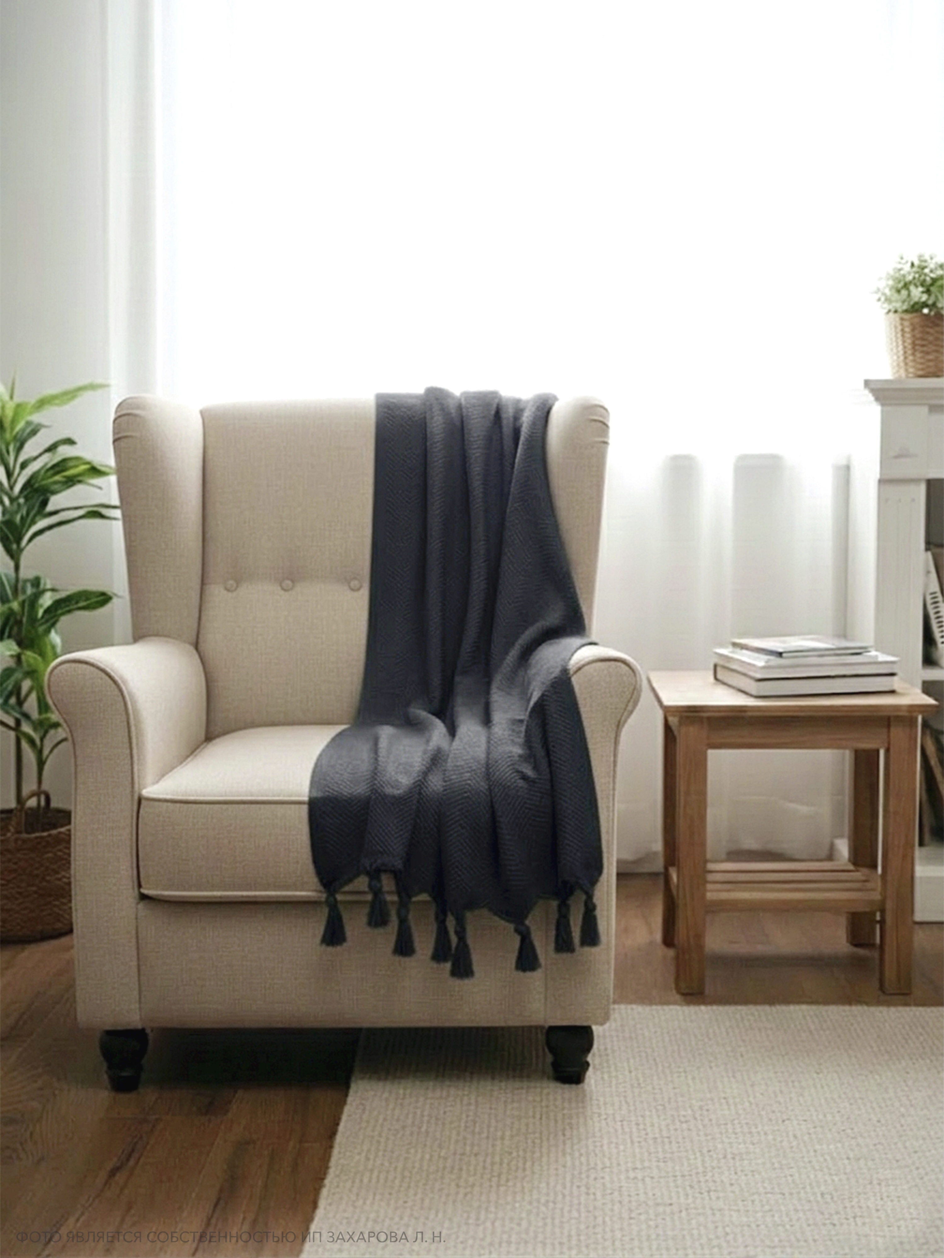 Обращаем внимание, размеры пледа указаны с учетом кистей.