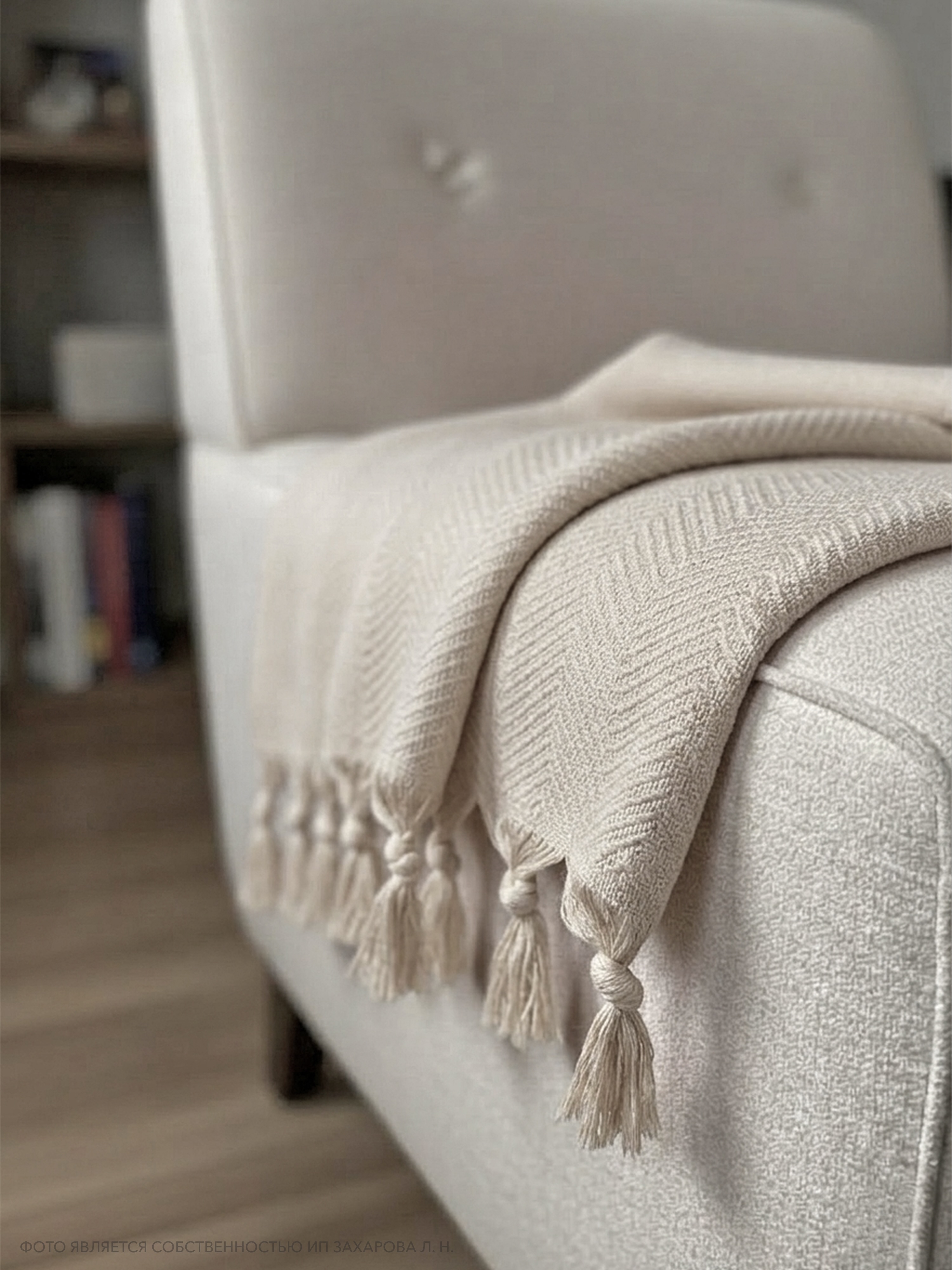 Обращаем внимание, размеры пледа указаны с учетом кистей.