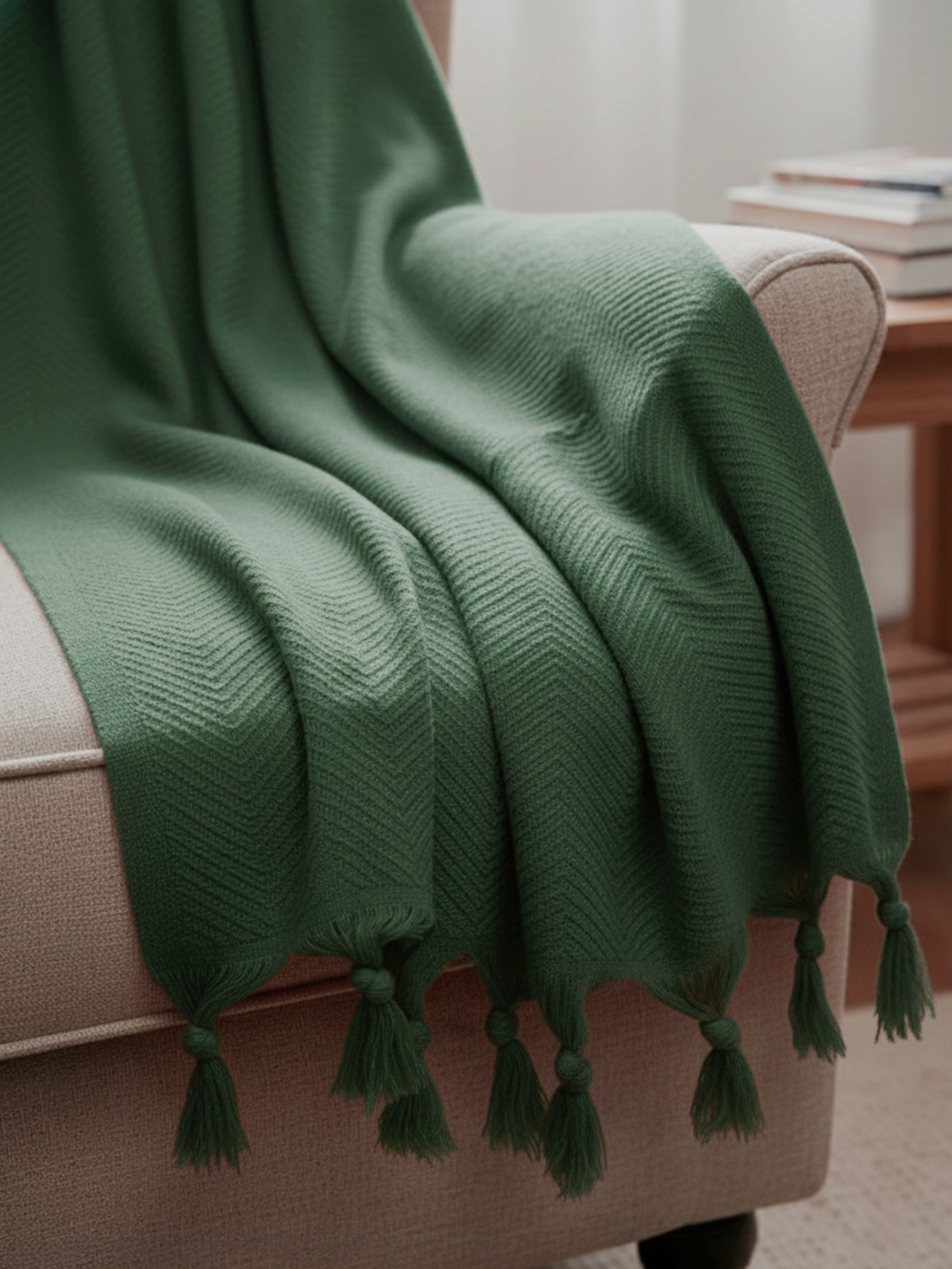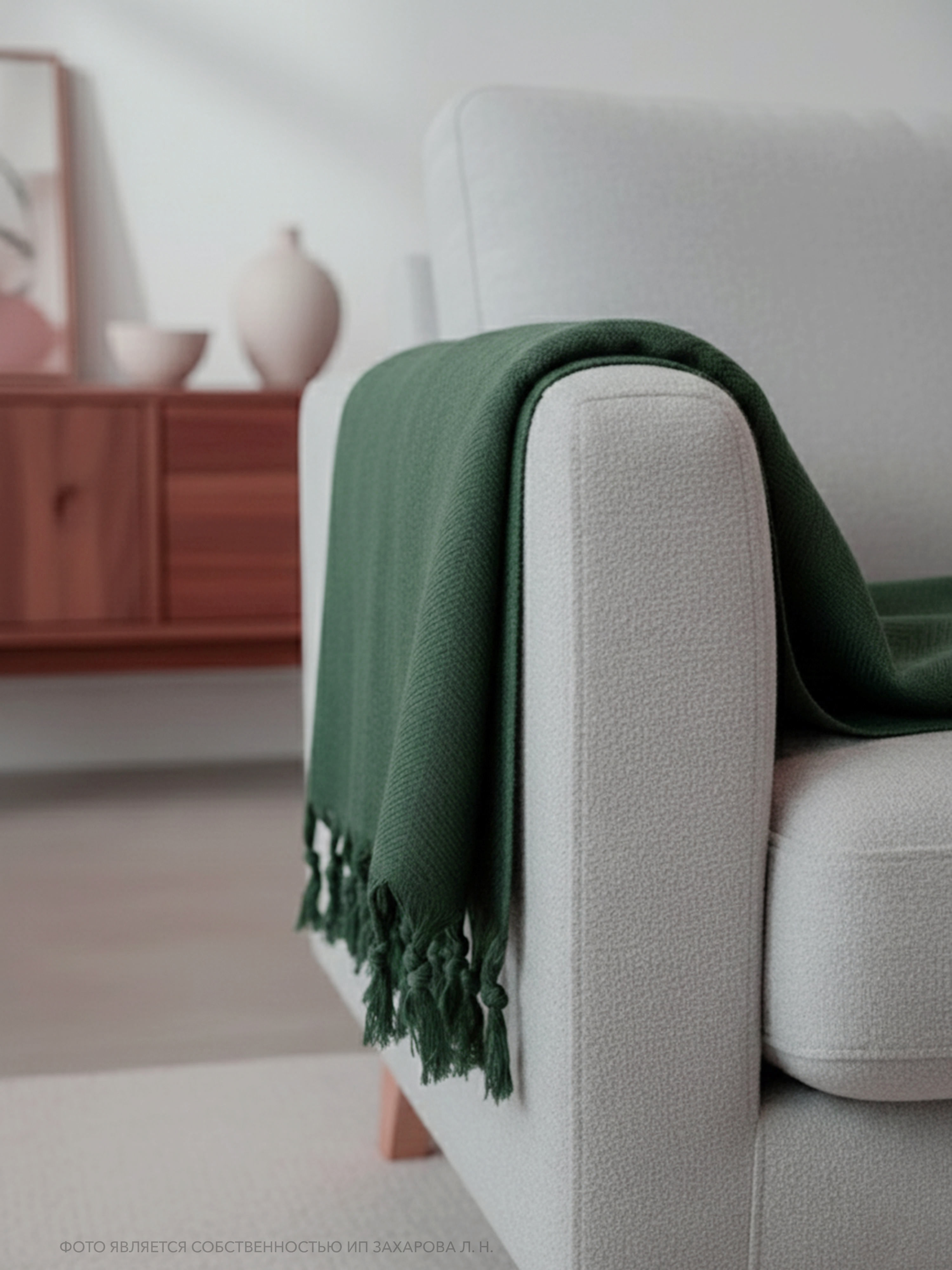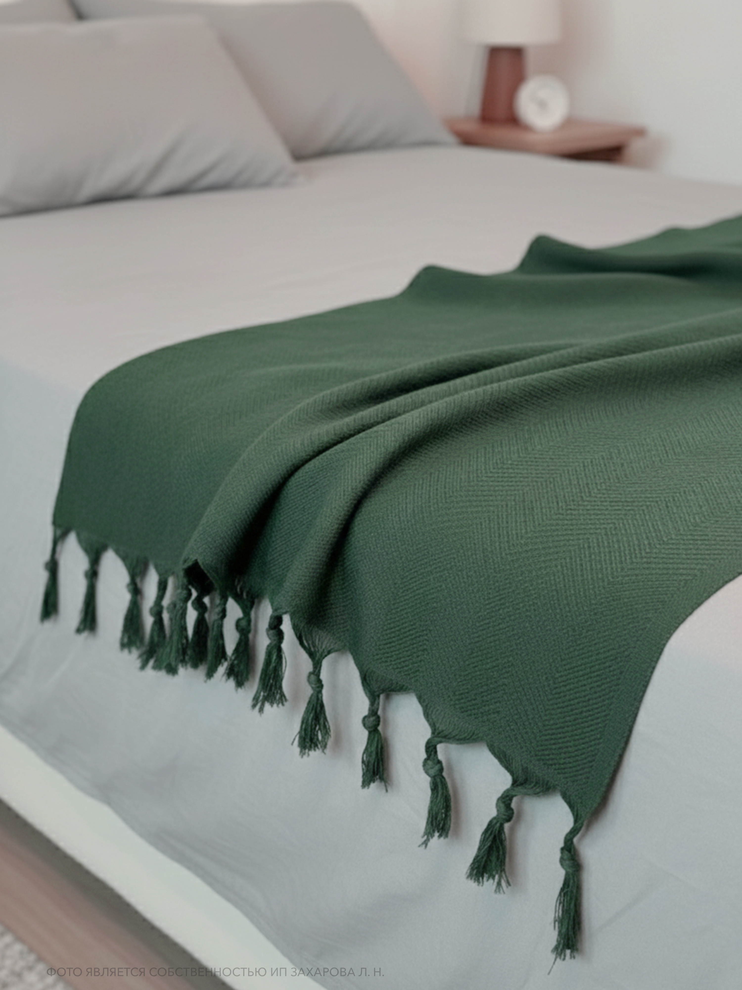 Плед имеет ткань в мелкий рубчик и кисточки по двум сторонам, что придает ему элегантный и стильный вид. Он универсален и подходит для всех сезонов года, так как его можно использовать в качестве пледа или покрывала. Кроме того, он может служить в качестве одеяла, если вам нужно дополнительное тепло.