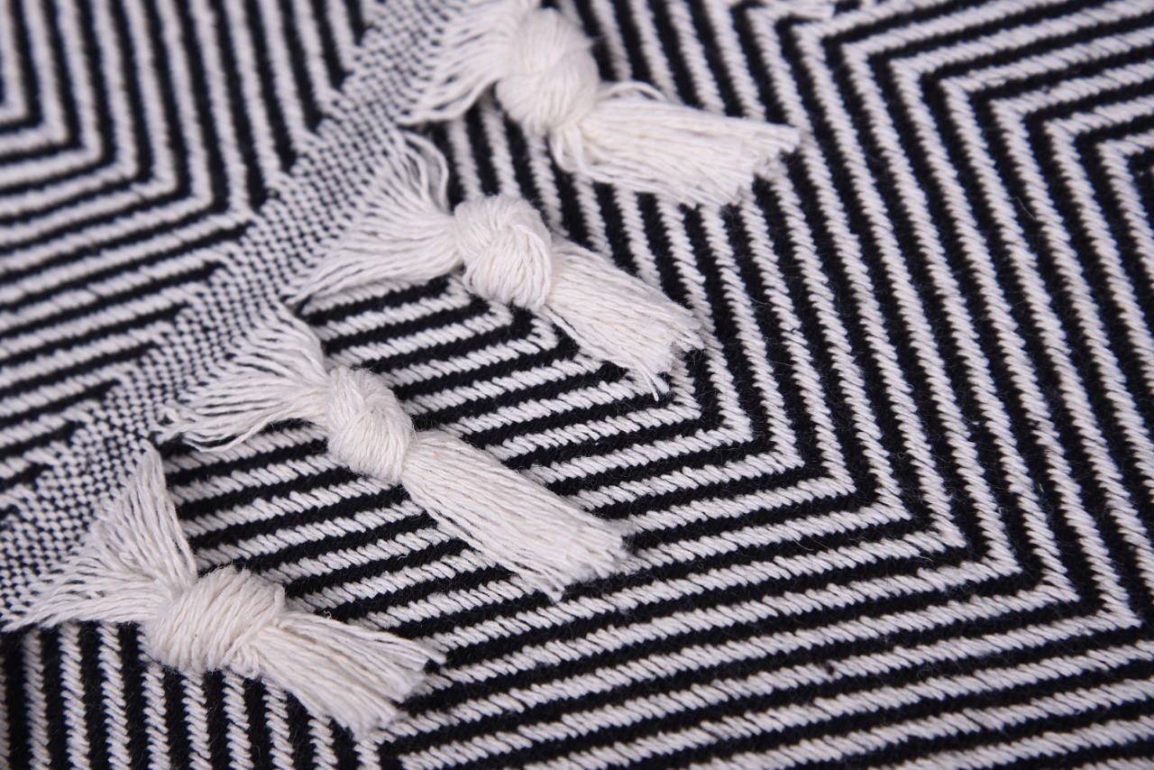 Хлопковый плед-покрывало «Venera» с кистями и геометрическим двухцветным узором – идеальный вариант комфорта и уюта в вашем доме. Плед универсален, в нем можно согреться в прохладную погоду, а можно использовать как покрывало на кровать, накидку на мягкую мебель или как одеяло.