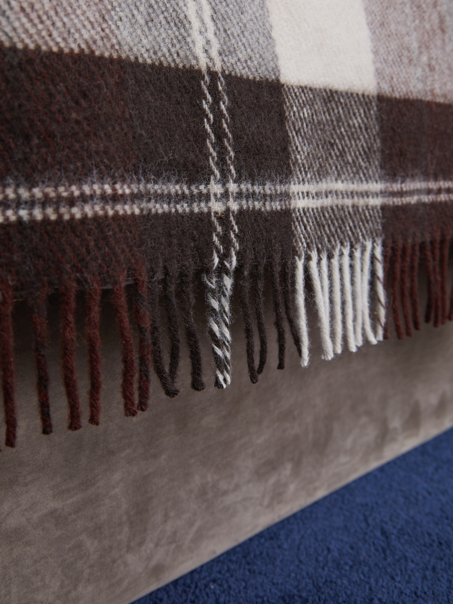 По короткой стороне у пледа длинная, красивая бахрома. Такой плед будет хорошо смотреться на кровати, диване.